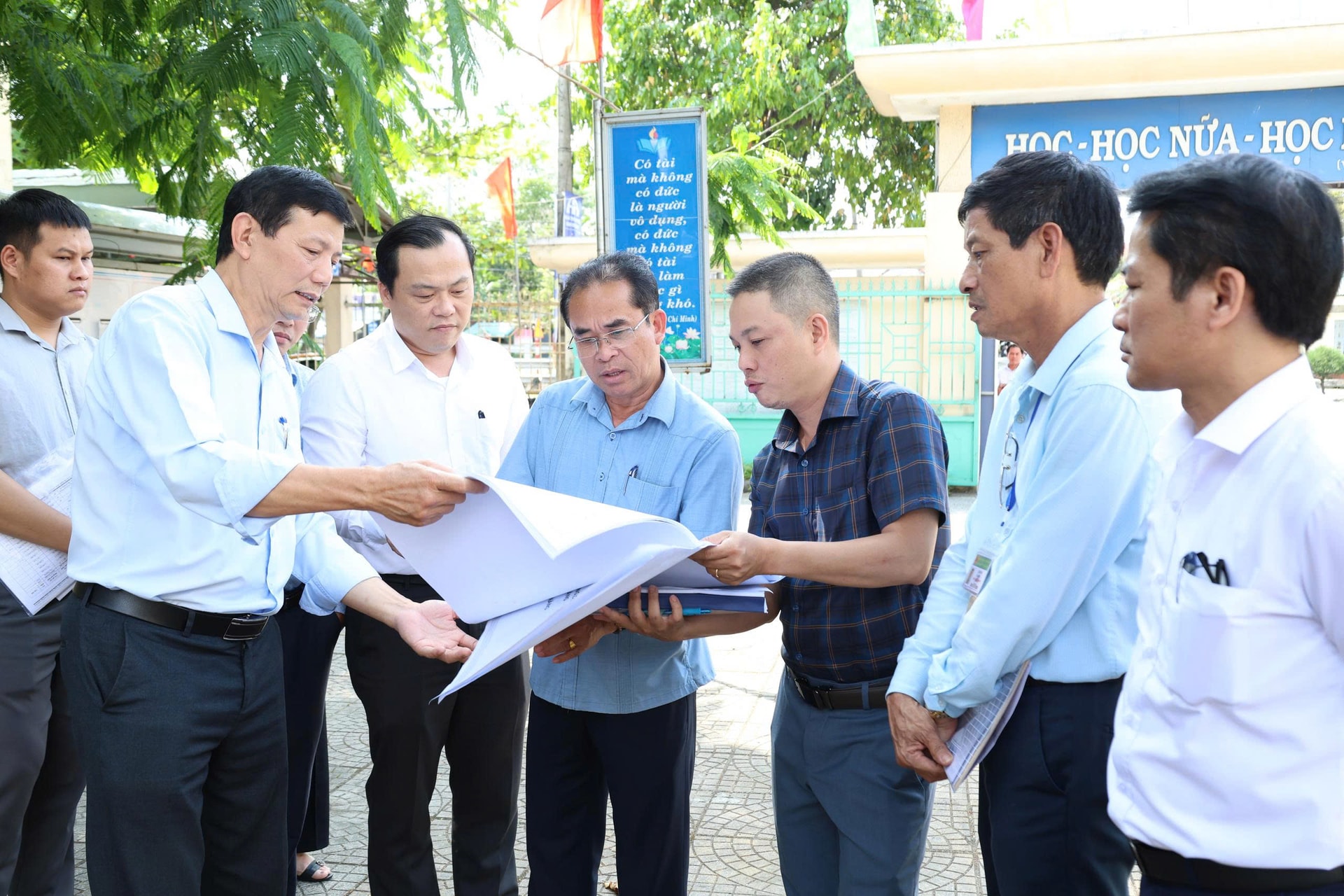 Lãnh đạo thành phố đi kiểm tra thực tế tại một số trường. Ảnh: NGỌC HÀ.