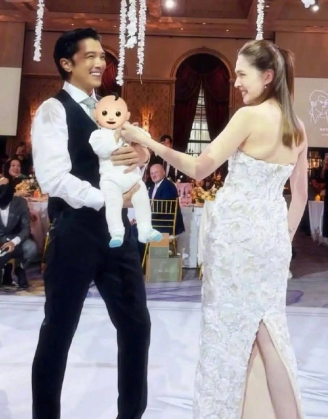 Đáng chú ý, cặp sao còn "đánh úp" lần đầu công khai quý tử 3 tháng tuổi với hàng trăm khách mời. Hứa Vỹ Ninh sinh con đầu lòng vào tháng 8 vừa qua. Sự xuất hiện của con trai đánh dấu một khoảnh khắc trọn vẹn hơn cho gia đình nhỏ. Lần đầu gặp đông người, bé tỏ ra dè dặt và luôn được mẹ nhẹ nhàng trấn an.