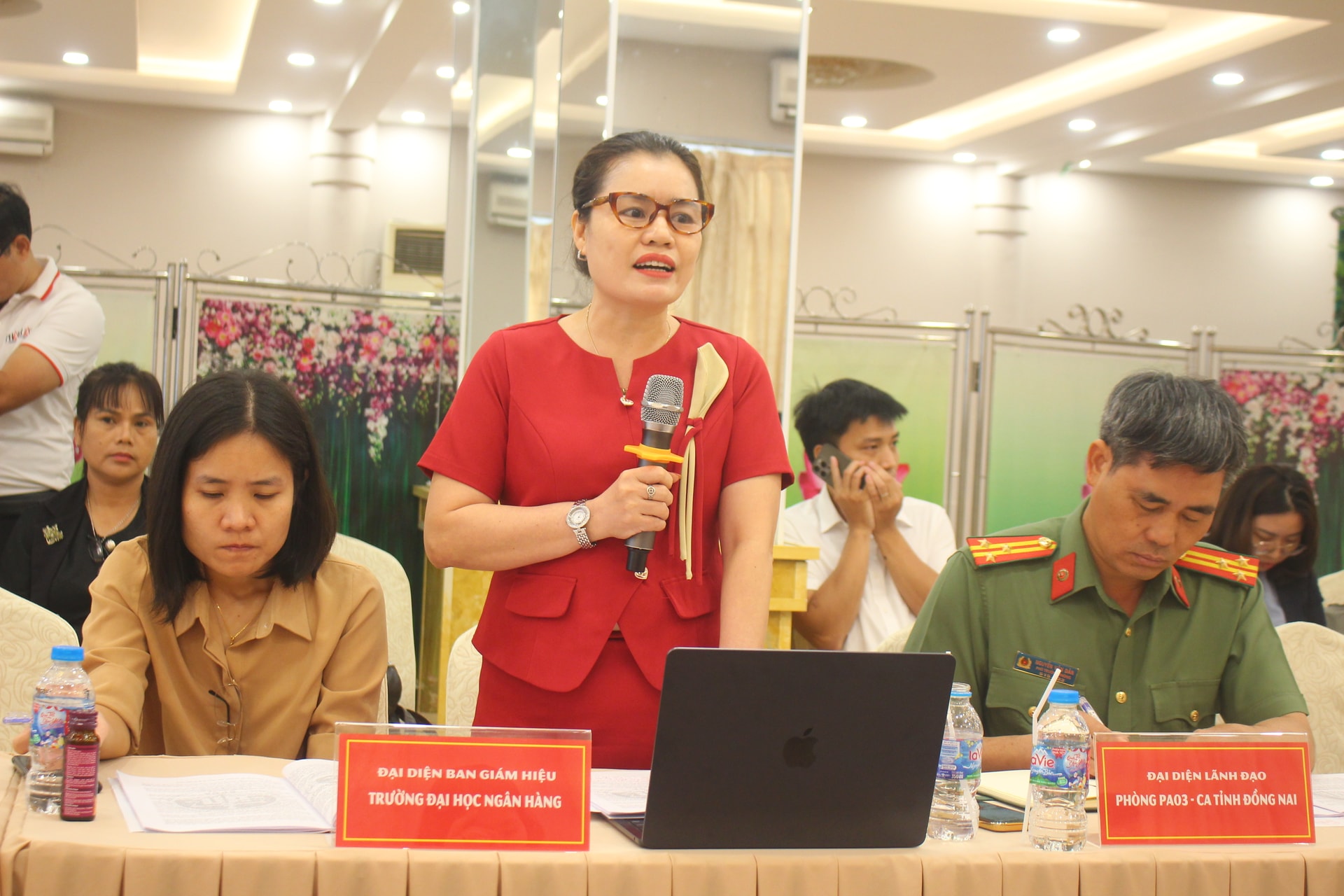 Đại diện Ban Giám hiệu Trường Đại học Ngân hàng nêu ý kiến tại hội nghị