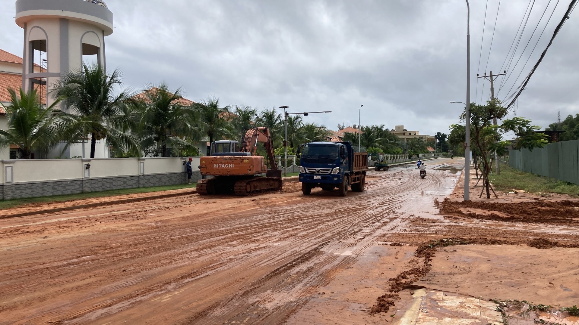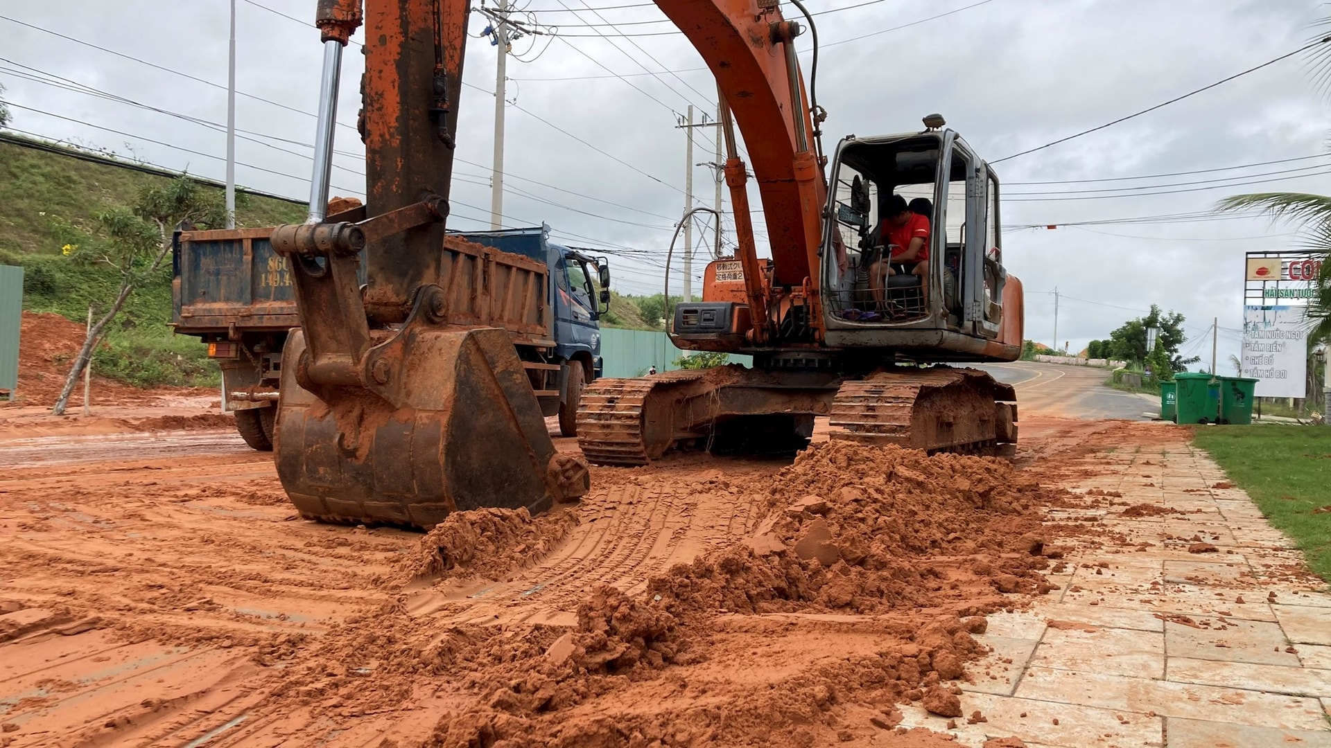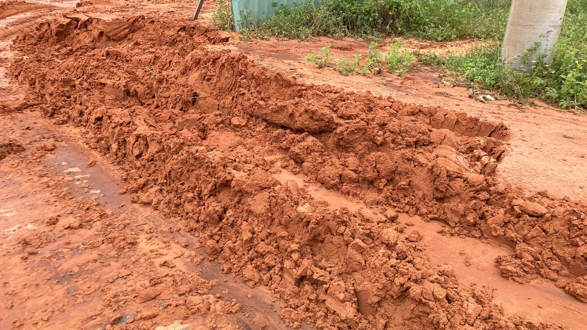 Lớp cát đỏ dày tràn xuống đường Lạc Long