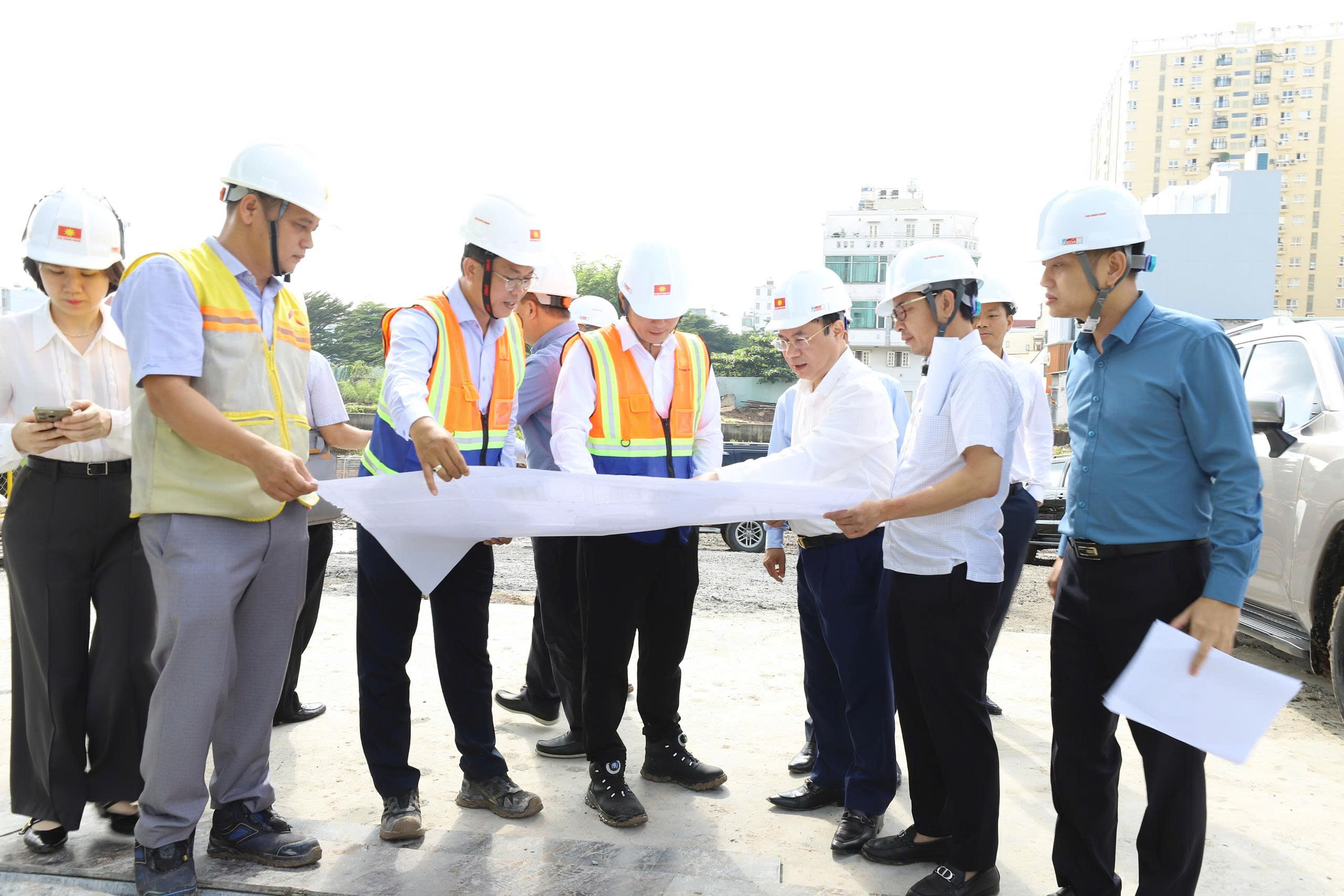 Đoàn giám sát Bộ Xây dựng đang giám sát tại dự án nhà ở cho lực lượng công an tại đường Nguyễn Văn Quá. Ảnh: THANH HIỀN