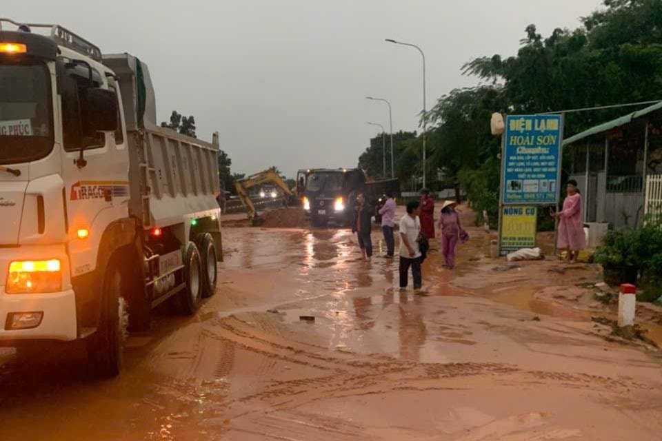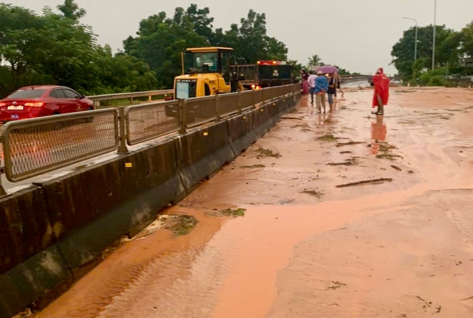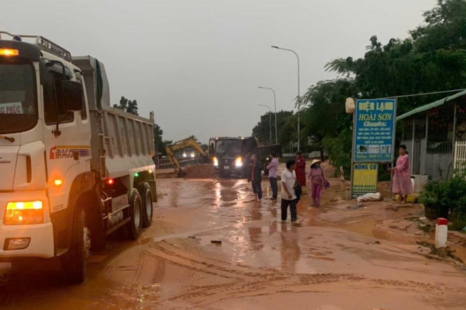 Việc khắc phục đang được triển khai khẩn trương, giao thông qua khu vực vẫn được điều tiết theo hướng một làn. Cát tràn với độ dày 30cm, nên việc khắc phục mất nhiều thời gian.