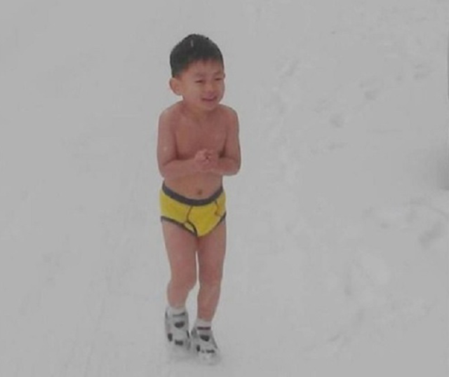 Bức ảnh Duoduo chạy trong tuyết lạnh từng gây "bão" mạng về phương pháp giáo dục của bố cậu bé (Ảnh: QQ).