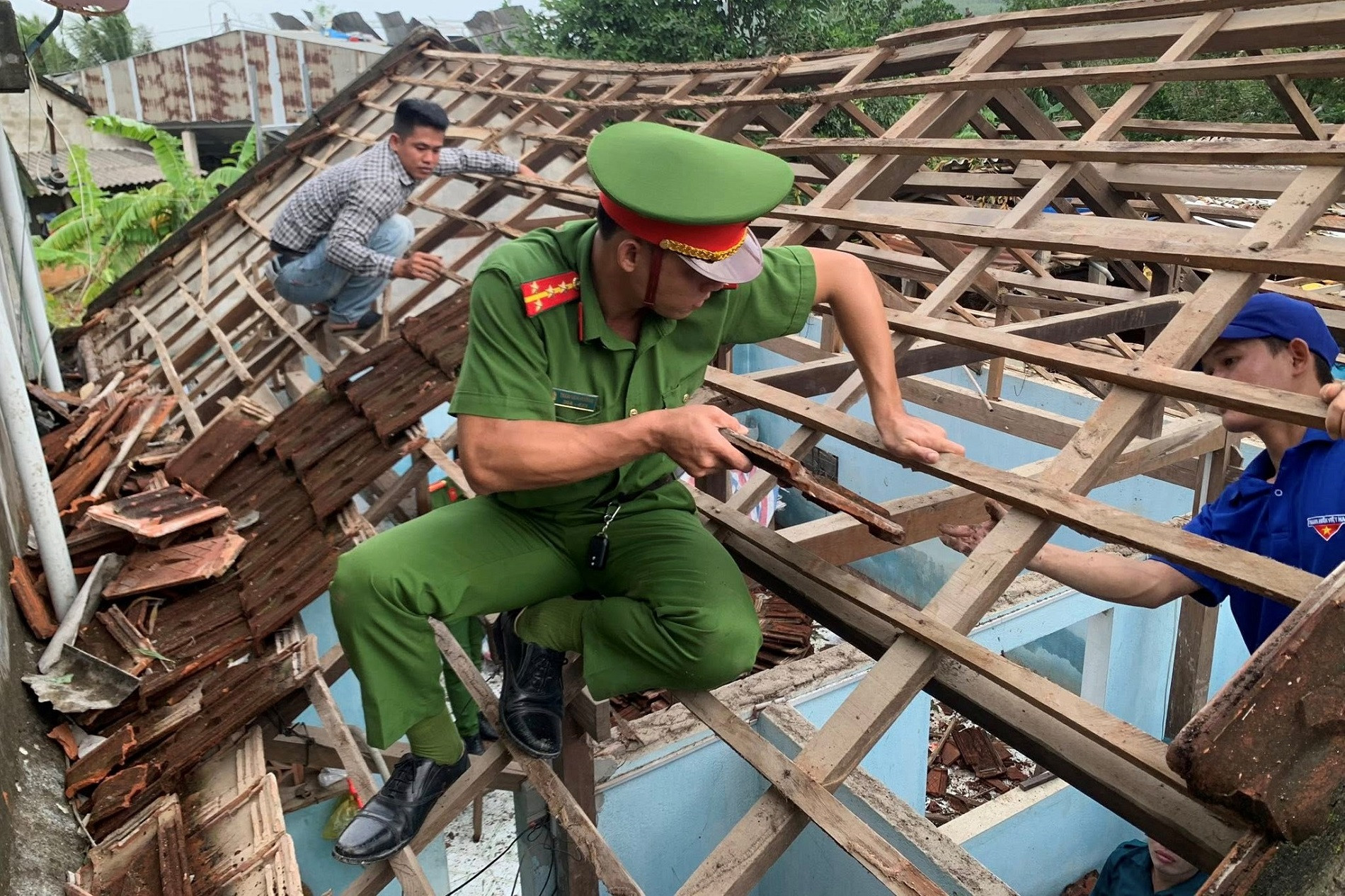 Ngay sau khi xảy ra sự cố, Công an xã Nguyễn Nghiêm đã phối hợp với các lực lượng chức năng của địa phương nhanh chóng hỗ trợ người dân sửa chữa, gia cố nhà cửa, di dời tài sản có giá trị đến nơi an toàn...