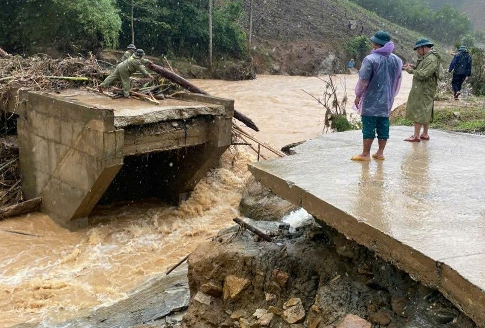 Theo ông Luật, rạng sáng nay nước lũ từ thượng nguồn đổ về mạnh, chảy xiết đã cuốn trôi mố cầu và một phần thân cầu, tạo điểm đứt gãy lớn ngay giữa dòng. Tuyến giao thông qua khu vực bị chia cắt hoàn toàn. Rất may, thời điểm xảy ra sự cố không có người qua lại nên không ghi nhận thiệt hại về người.