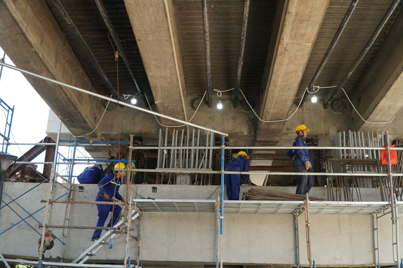 Gần 200 kỹ sư và công nhân làm việc theo mô hình 3 ca 4 kíp mỗi ngày để rút ngắn tiến độ.