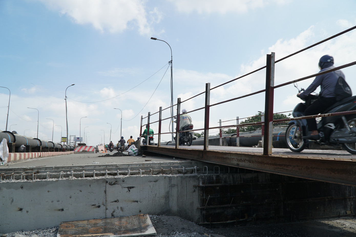 Trong thời gian thi công, chủ đầu tư bố trí hai cầu thép tạm cho xe máy lưu thông, còn ô tô trước đó đã được điều tiết sang cầu Bình Phước 2, giúp giao thông không bị xáo trộn lớn.