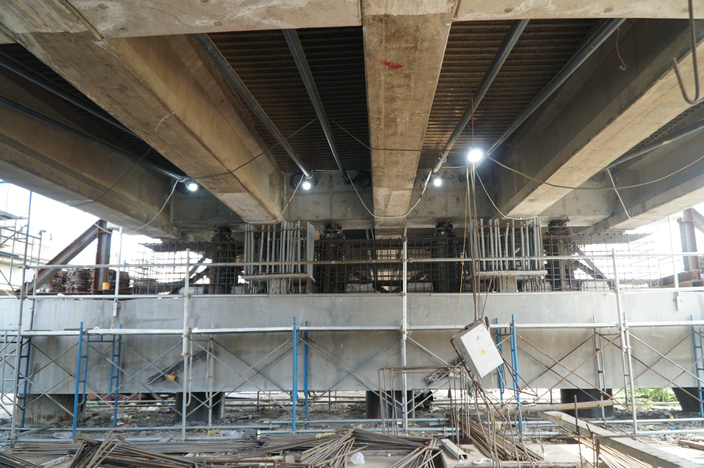 Sau khi nâng đạt cao độ, đơn vị thi công tiếp tục gia cố xà mũ trụ và đầu mố để ổn định kết cấu trước khi khai thác trở lại. Việc lắp đặt tuyến ống nước D450 tại hai đầu cầu và hoàn trả mặt đường cũng đang được triển khai.