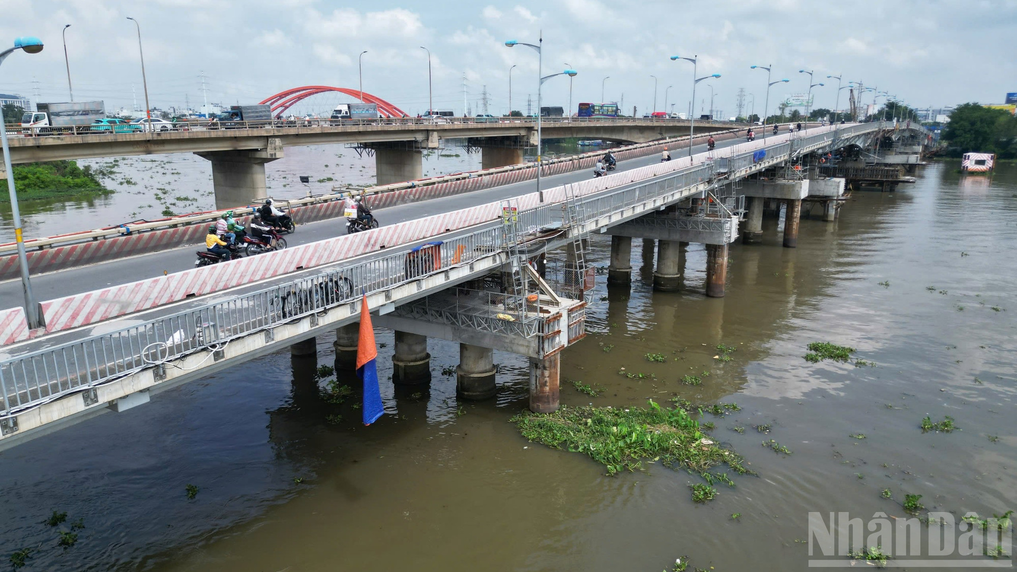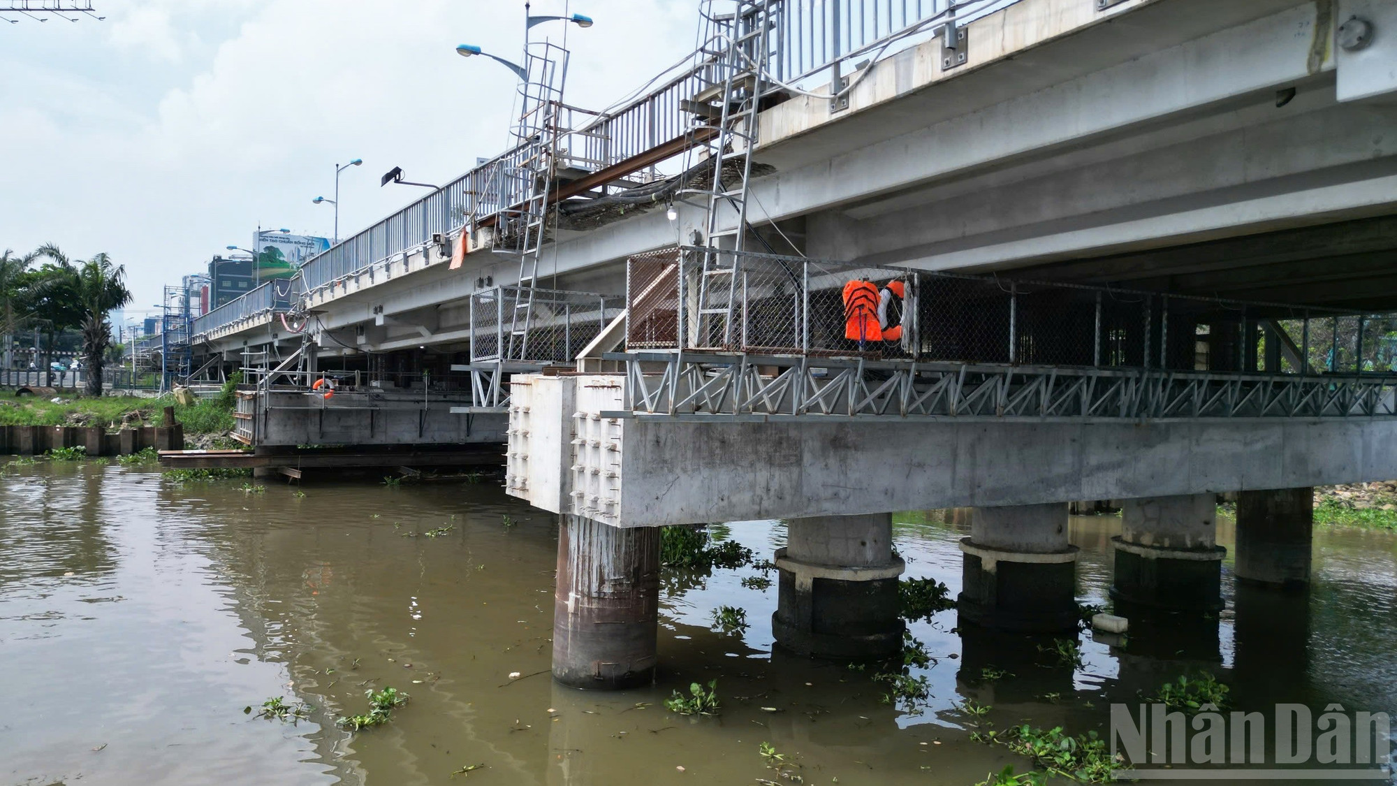 Sau một tháng thi công, cầu Bình Triệu 1 Thành phố Hồ Chí Minh nặng 11.000 tấn đã được nâng cao thêm 1,1m.