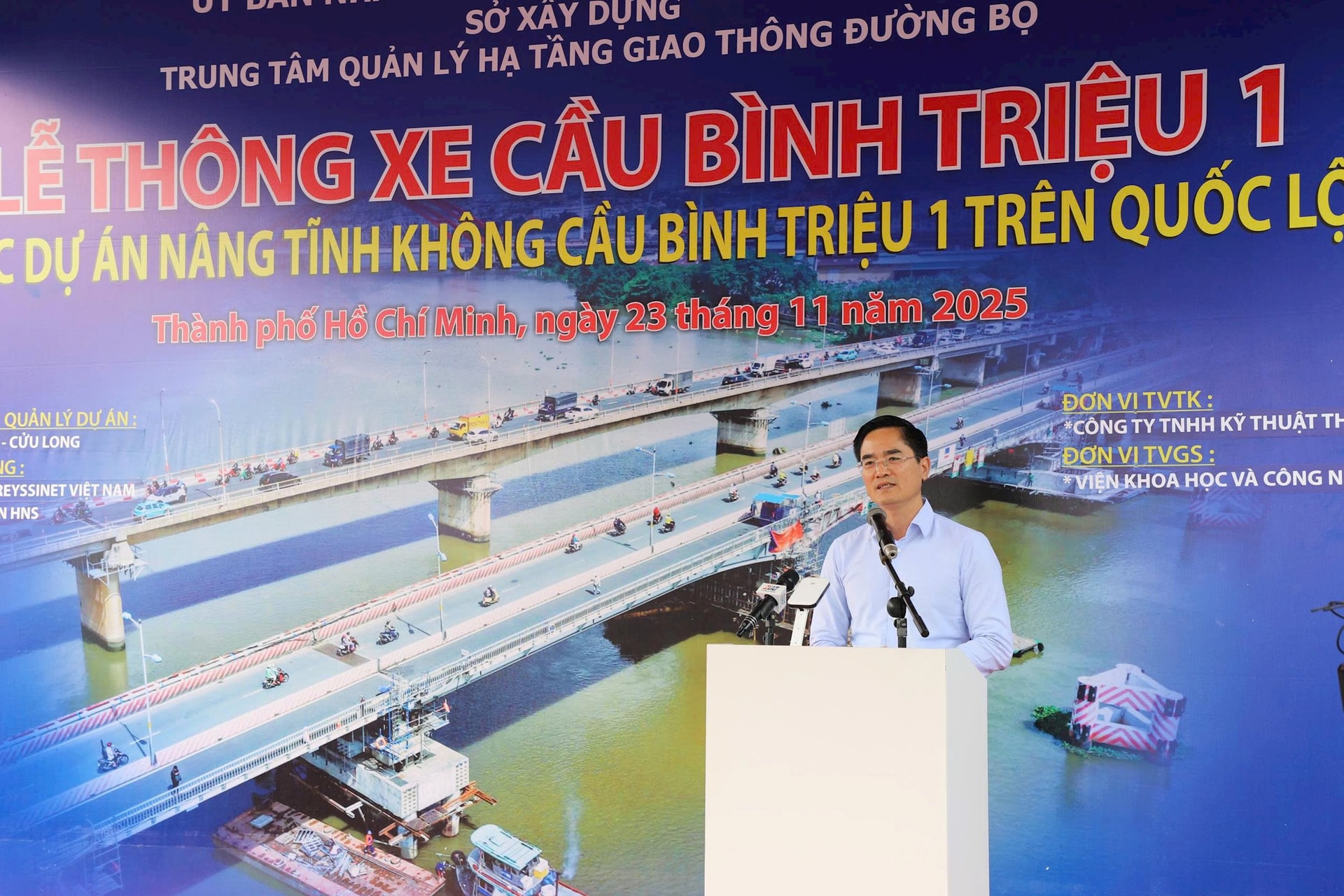 Phát biểu tại lễ thông xe, Giám đốc Sở Xây dựng TP.HCM Trần Quang Lâm ghi nhận nỗ lực của Trung tâm Quản lý hạ tầng giao thông đường bộ, các lực lượng thi công, tư vấn, giám sát và đặc biệt là sự phối hợp của chính quyền phường Hiệp Bình, Bình Thạnh cùng người dân.