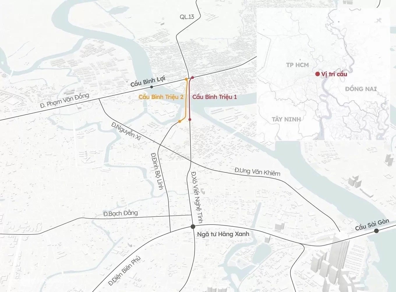 Hướng tuyến hai cầu Bình Triệu. (Đồ họa: Khánh Hoàng)