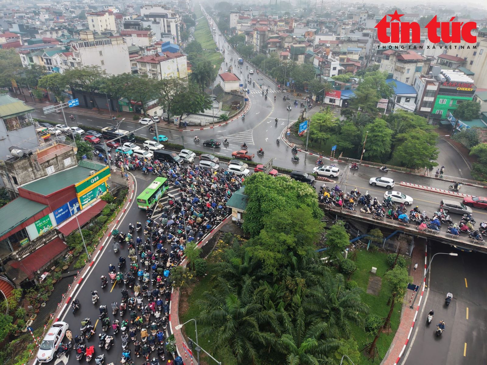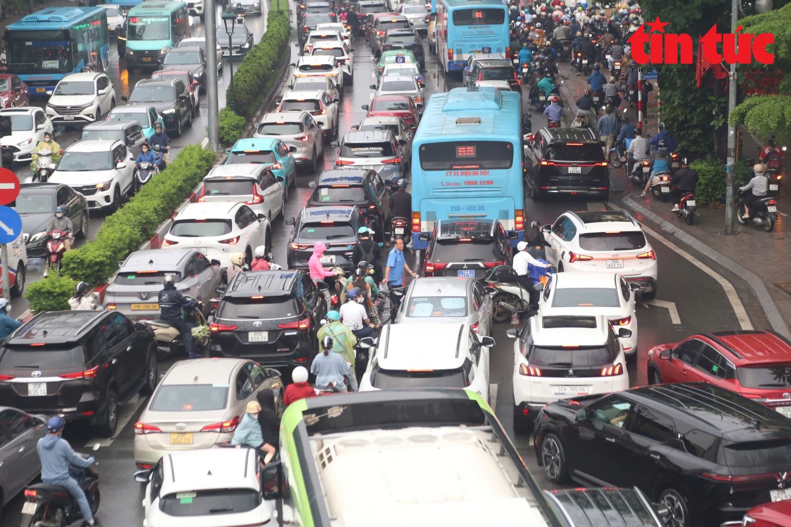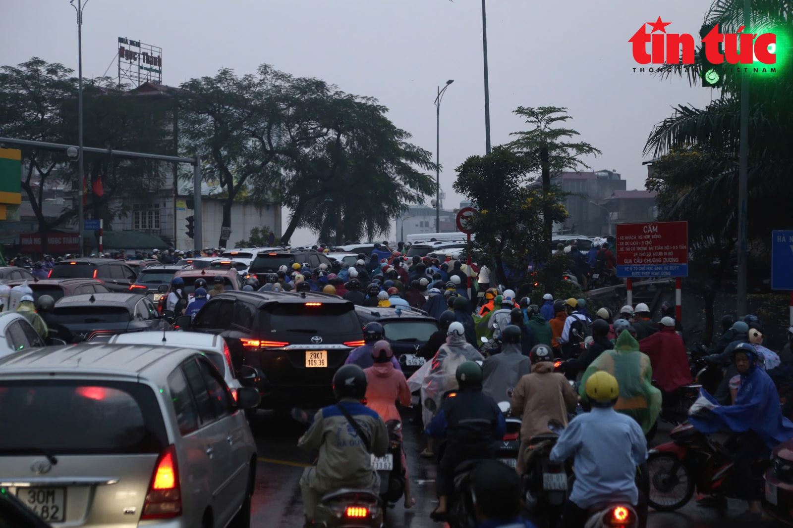 Cơn mưa lớn sáng nay cũng khiến tình trạng ùn tắc các tuyến đường hướng về cầu Chương Dương càng nghiêm trọng hơn.