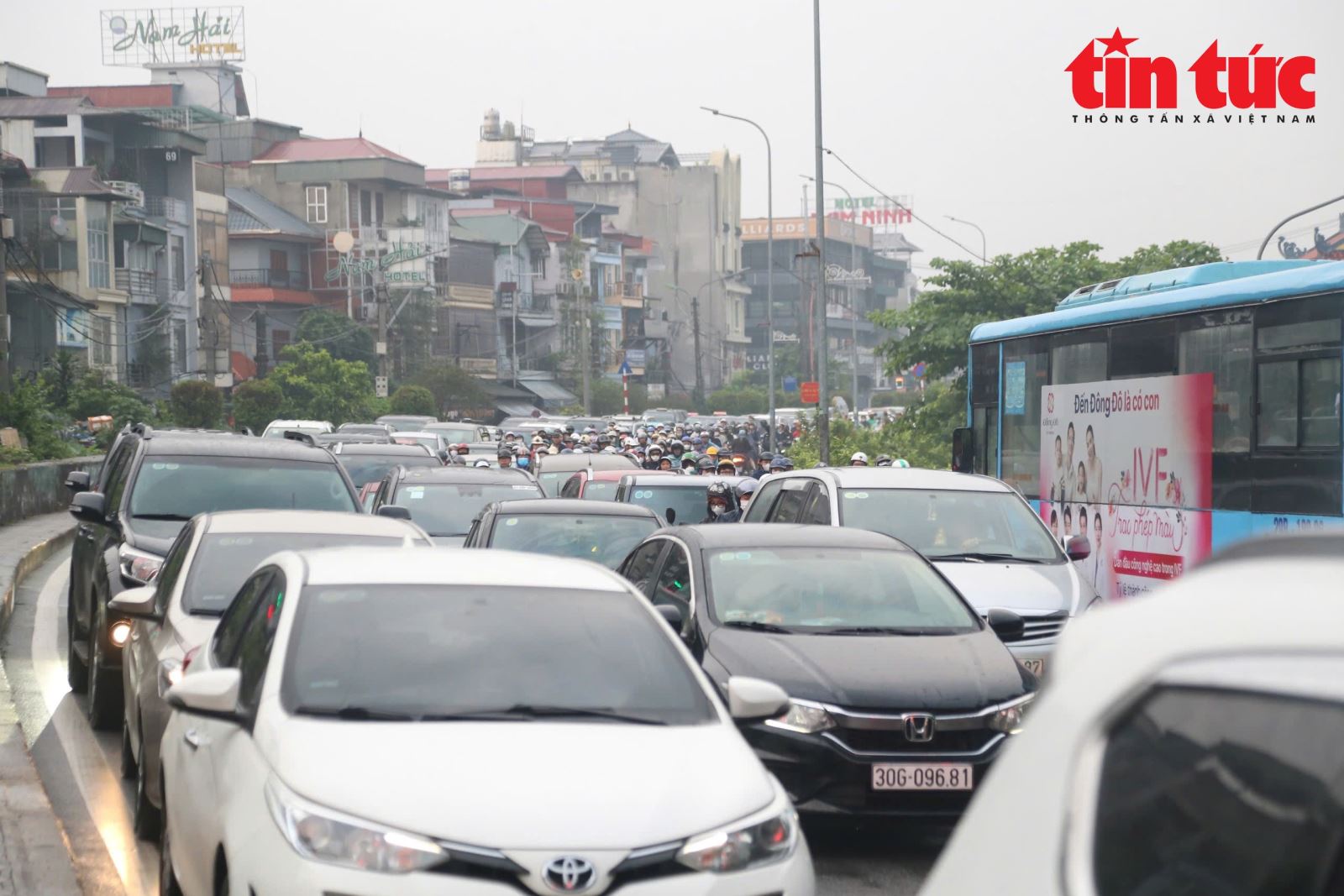 Trong giờ cao điểm, phương tiện nhích từng mét đường trên đường Long Biên - Xuân Quang, Nguyễn Văn Cừ.