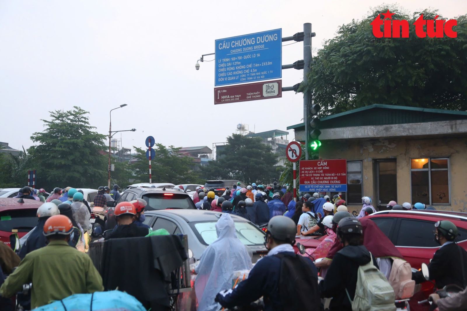 Do cấm cầu Long Biên, phương tiện đổ dồn qua cầu Chương Dương trong sáng nay, khiến giao thông ùn tắc nghiêm trọng vào giờ cao điểm.