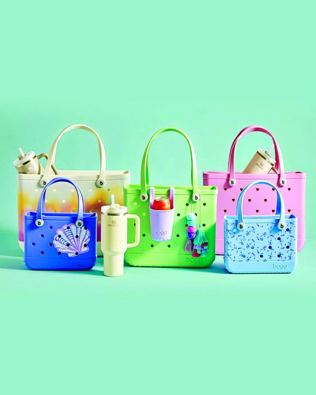 Bogg bag - chiếc túi nhựa hình chữ nhật khổng lồ - được nhiều phụ nữ ưa chuộng vì có thể đựng mọi thứ người mẹ cần cho ngày đi biển hay đón con sau giờ học.