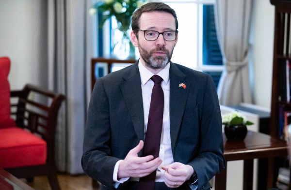 Đại sứ Iain Frew: Vâng, năm nay chúng ta đang kỷ niệm 15 năm thiết lập quan hệ Đối tác Chiến lược giữa Anh và Việt Nam. Điều đó có nghĩa là trong 15 năm qua, chúng ta đã không ngừng làm sâu sắc hơn mối quan hệ giữa hai nước trên nhiều lĩnh vực khác nhau. Tôi thực sự vui mừng và ấn tượng với những tiến triển mà chúng ta đạt được trong thương mại, giáo dục, tài chính, hợp tác an ninh và khí hậu. Ở tất cả những lĩnh vực này, Anh và Việt Nam hợp tác ngày càng chặt chẽ, hỗ trợ lẫn nhau.