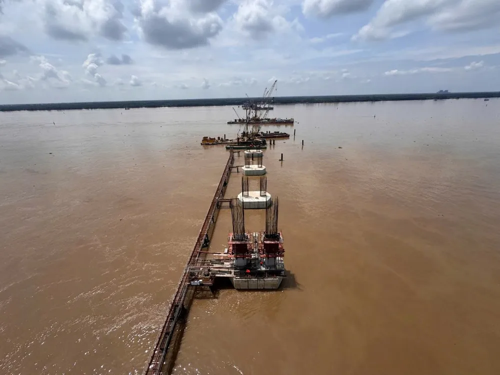 Công trình cầu Đại Ngãi nối tỉnh Vĩnh Long và TP Cần Thơ đang dần thành hình