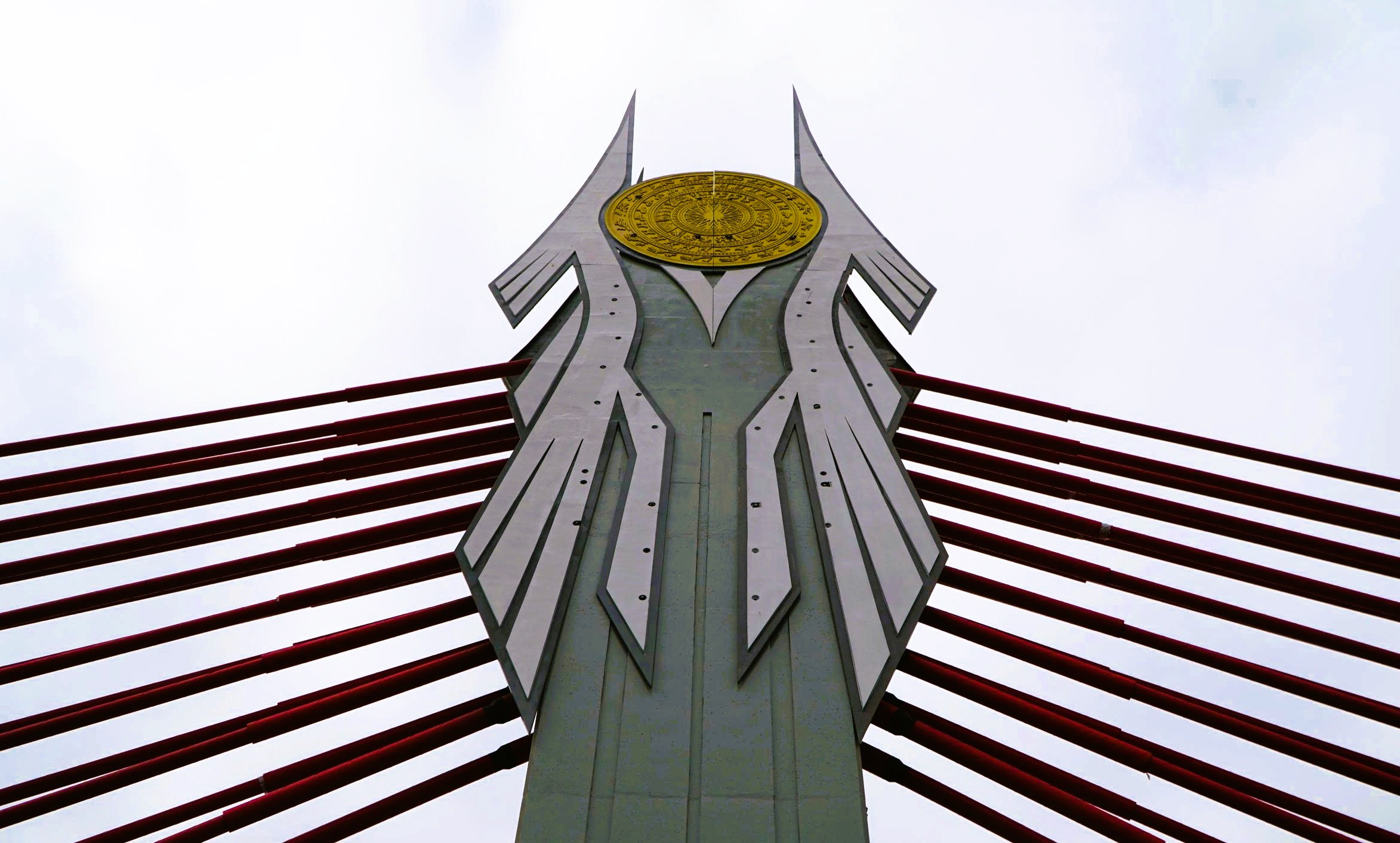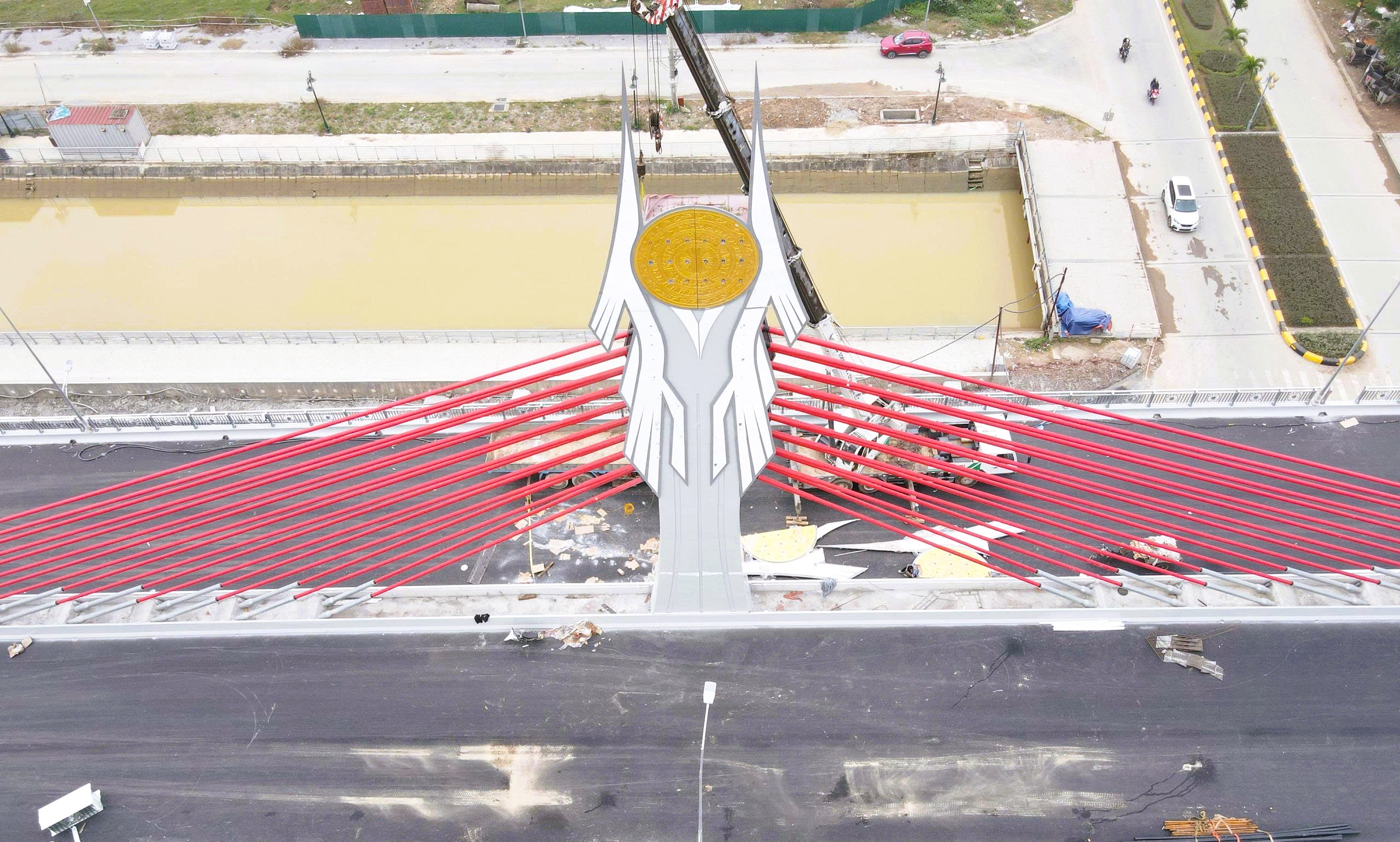Biểu tượng chim hạc được thiết kế rất bắt mắt trên đỉnh tháp dây văng