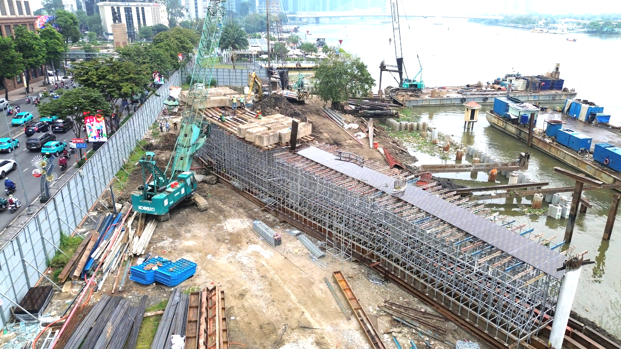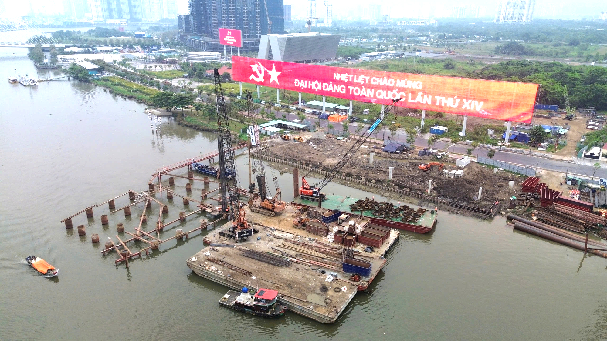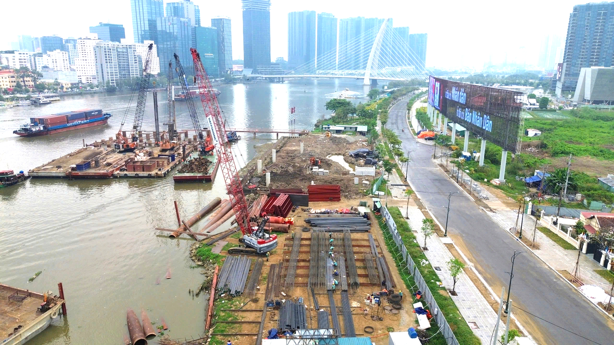 Các hạng mục trụ cầu, bệ móng và kết cấu phụ trợ dần hiện rõ hình hài, cho thấy tiến độ dự án đang được kiểm soát chặt chẽ, đáp ứng yêu cầu kỹ thuật và an toàn trong điều kiện thi công phức tạp trên sông Sài Gòn. Chủ đầu tư cho biết, công trình dự kiến hoàn thành và đưa vào sử dụng vào dịp Quốc khánh 2/9/2026, hứa hẹn trở thành điểm nhấn kiến trúc - văn hóa mới của TP.HCM.