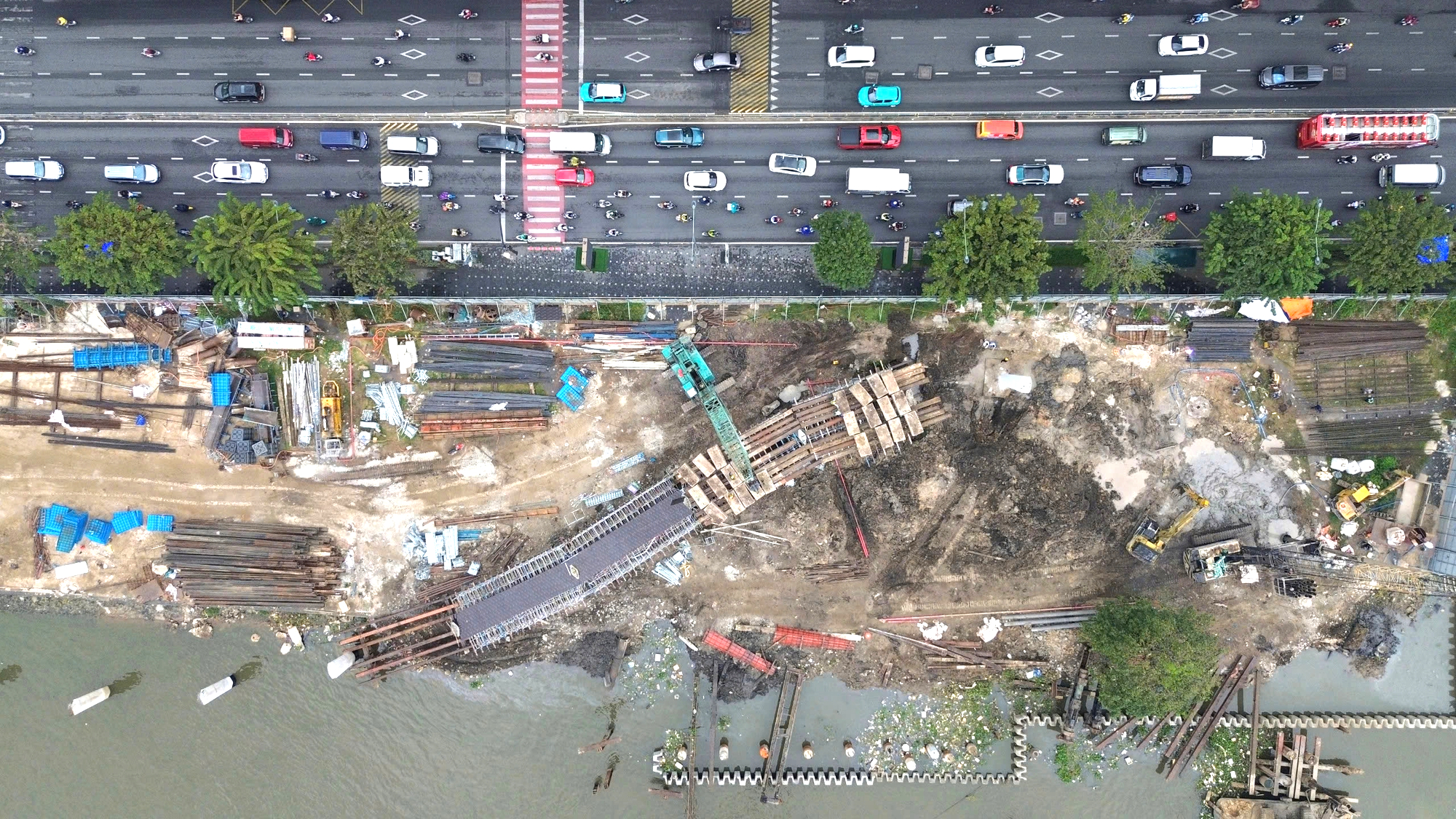 Trước đó, từ tháng 4/2025, các hạng mục cầu dẫn và đường đầu cầu ở cả hai bên bờ sông Sài Gòn đã được triển khai. Trong quá trình thi công, dự án gặp không ít khó khăn do vướng các kết cấu ngầm ngoài dự kiến. Tuy nhiên, các nhà thầu đã chủ động tìm giải pháp khắc phục kịp thời.