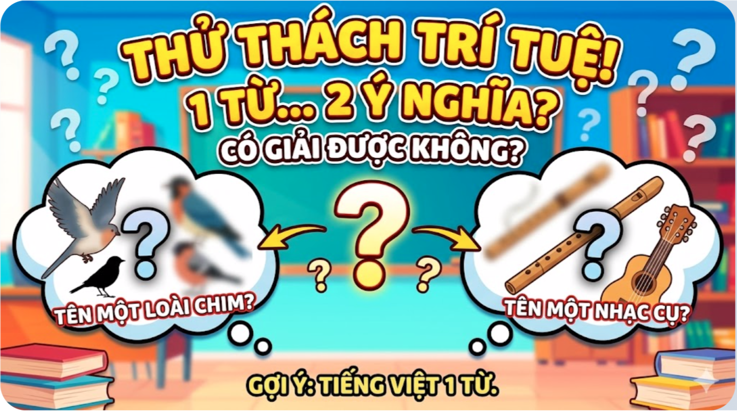 Những câu đố tiếng Việt luôn thu hút sự quan tâm của nhiều người bởi tính ngắn gọn nhưng đòi hỏi sự suy luận. Gần đây, một câu đố chơi chữ đơn giản được nhiều người chia sẻ trên mạng xã hội. Câu hỏi được đặt ra: Từ tiếng Việt nào vừa là tên một loài chim, nhưng đồng thời cũng là tên một loại nhạc cụ?