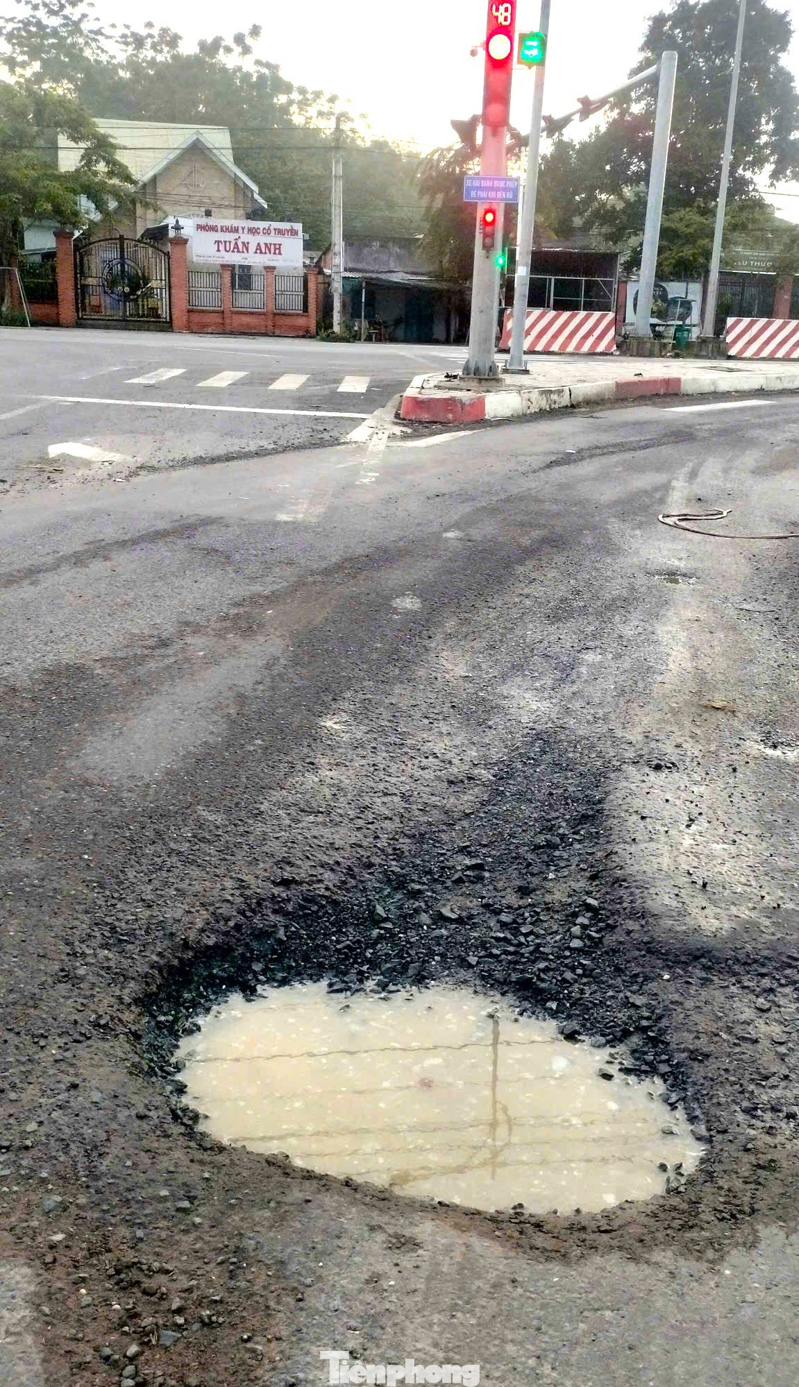 Hố lớn xuất hiện ở đoạn đường dẫn lên cầu Bình Tây.