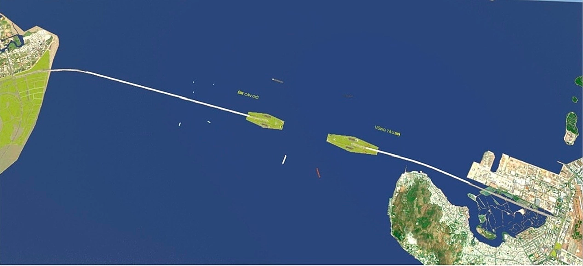 Dự án sẽ hình thành hai đảo nhân tạo hai bên khu vực thông thuyền, nhằm thuận lợi cho thi công, thay cho phương án làm cầu cao khoảng 60m.