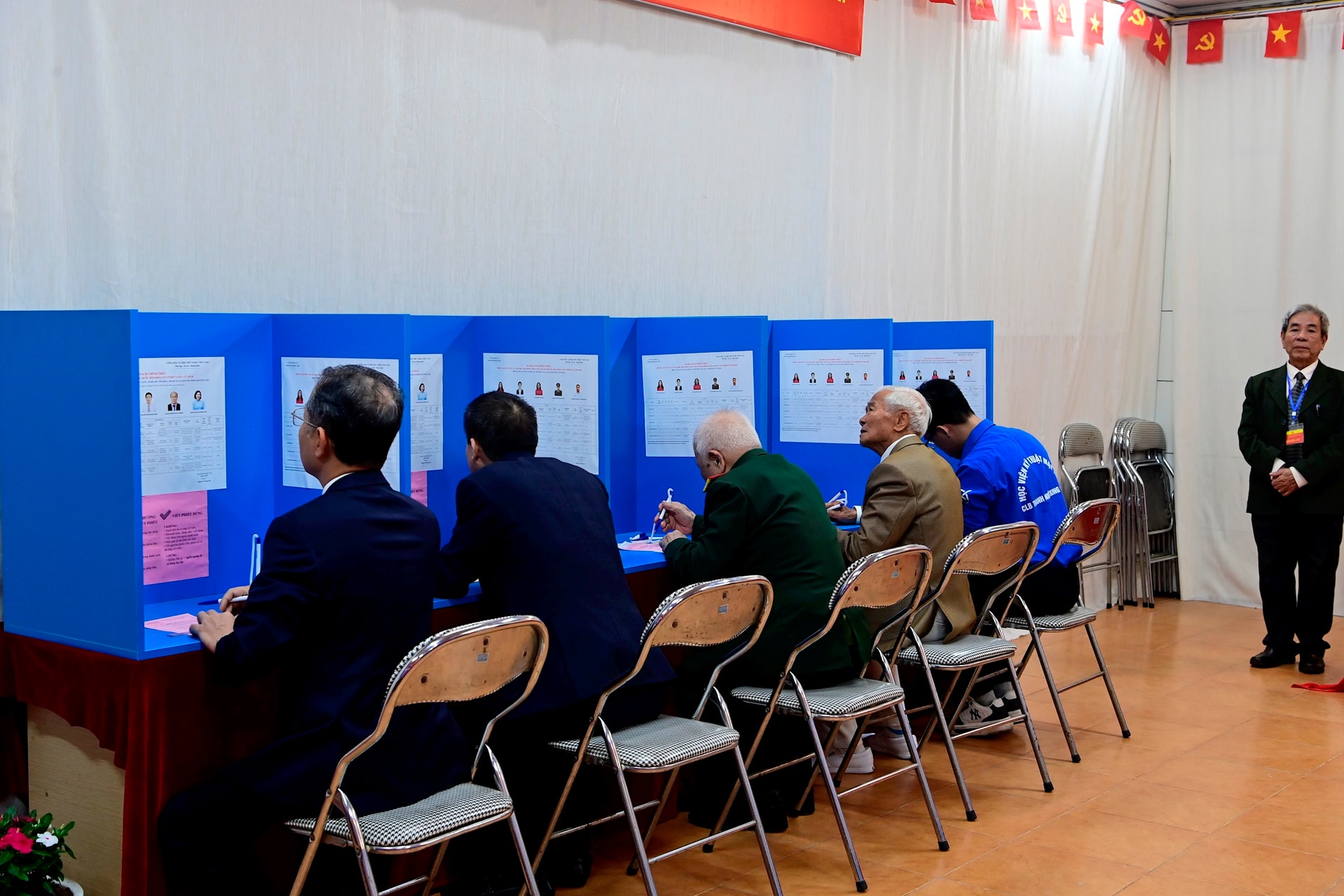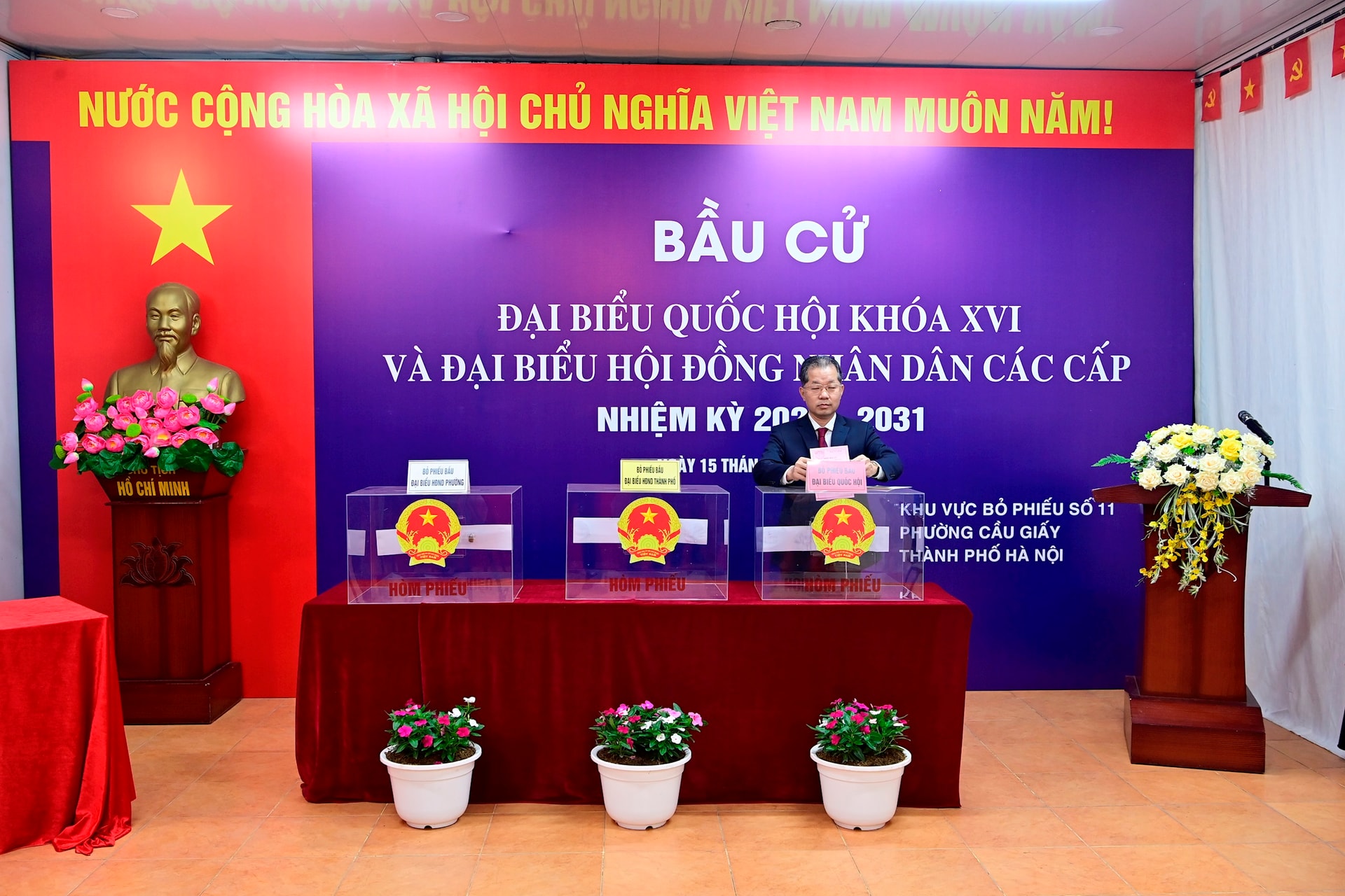 Cử tri phường Cầu Giấy tham gia ngày hội của toàn dân. Ảnh: Vân Nhi