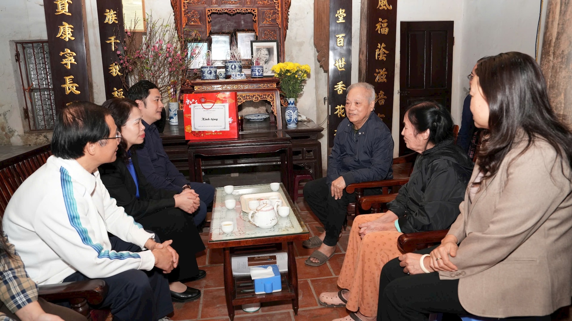 Lãnh đạo phường Cầu Giấy thăm, động viên các gia đình thuộc diện giải phóng mặt bằng. Ảnh Vân Nhi. Ảnh: PV