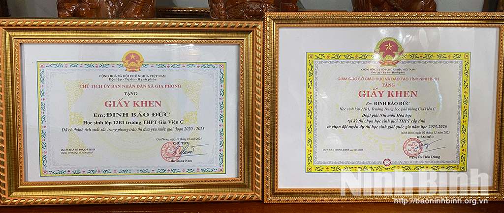 Thầy giáo Lê Xuân Quang, Chủ nhiệm Đội tuyển học sinh giỏi quốc gia môn Hóa học, năm học 2025 - 2026 của tỉnh Ninh Bình cho biết: “Trong 3 tháng ôn luyện để tham dự kỳ thi học sinh giỏi quốc gia môn Hóa học, em Đinh Bảo Đức luôn là một học sinh ngoan, khả năng thích nghi nhanh, tiếp thu kiến thức tốt, tinh thần tự học cao. Các thầy cô cũng rất ghi nhận sự nỗ lực, cố gắng của Đức. Và giải Ba quốc gia bộ môn Hóa học là một thành tích rất đáng khâm phục. Nếu mà Đức có điều kiện tham gia học trường chuyên từ sớm, tôi tin chắc rằng, em ấy còn có thể đạt được thành tích cao hơn nữa”.