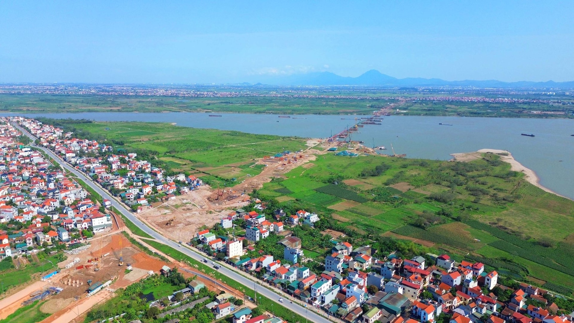 Cầu Hồng Hà có tổng chiều dài 6 km, bắc qua sông Hồng, đóng vai trò là dải lụa kết nối hai huyện Đan Phượng và Mê Linh. Với tổng mức đầu tư gần 10.000 tỷ đồng, đây không chỉ là công trình kỹ thuật quy mô lớn mà còn là trục giao thông huyết mạch thúc đẩy giao thương giữa các khu vực của Hà Nội.