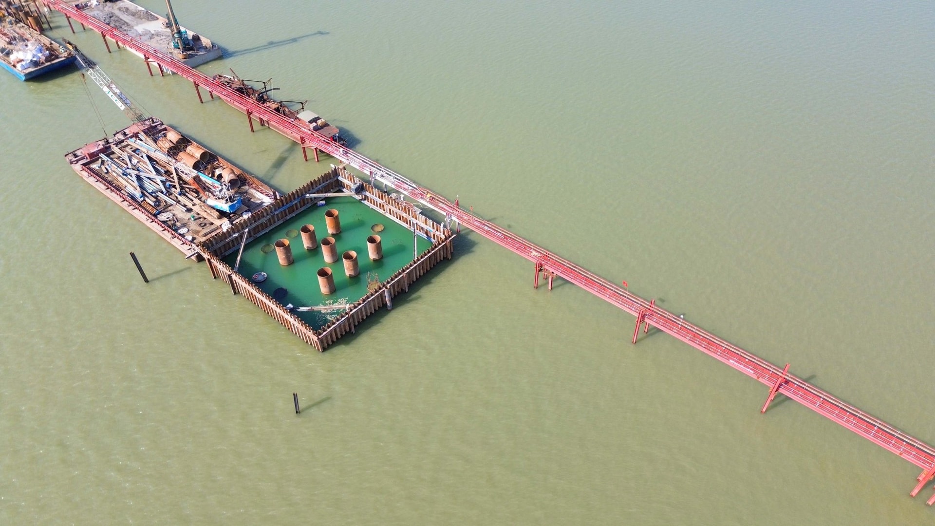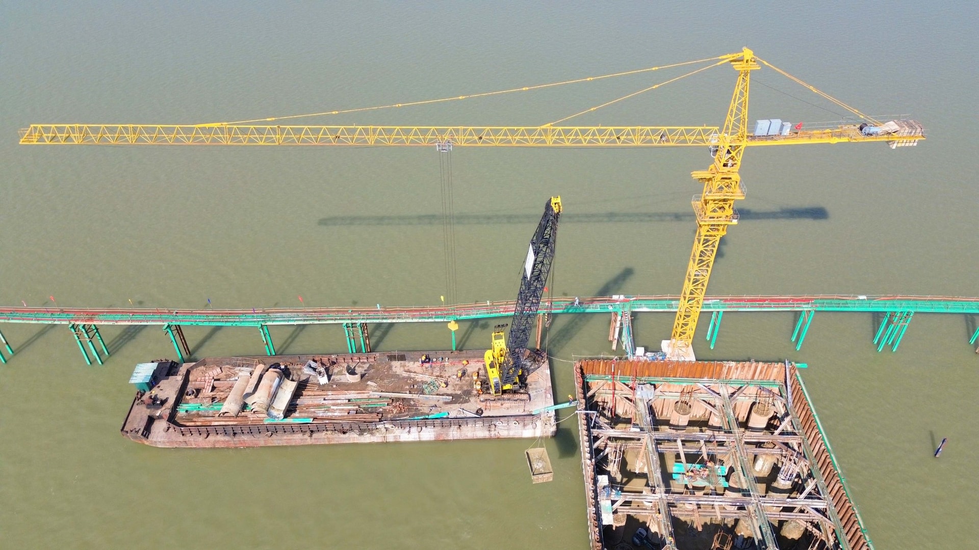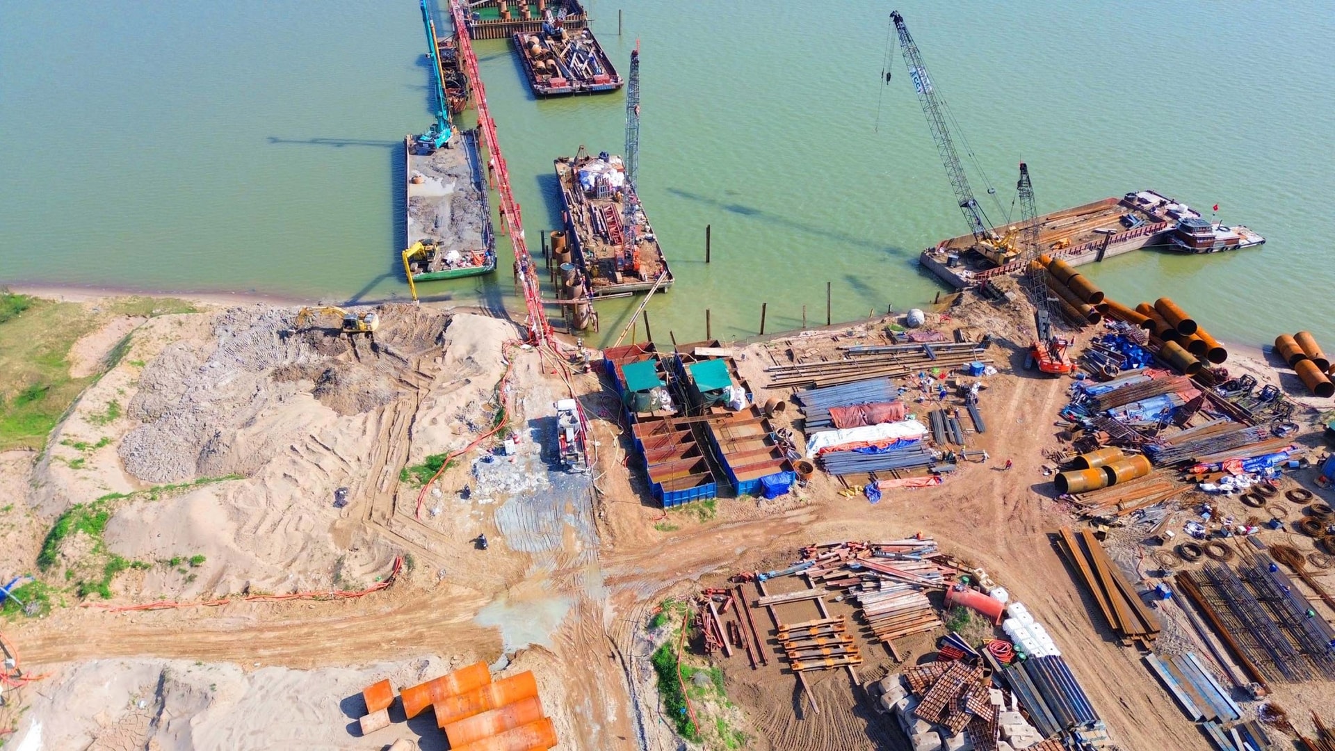 Đáng chú ý, gói thầu do nhà thầu Trung Chính đảm nhiệm — đơn vị phụ trách 3 trụ chính giữa sông — đã hoàn tất phần cọc khoan nhồi và đang chuyển sang giai đoạn thi công trụ cầu. Đơn vị này hiện đang vượt tiến độ đề ra khoảng 30%.