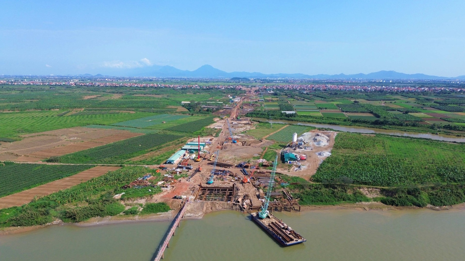 Dự án xây dựng cầu Hồng Hà, một trong những công trình giao thông trọng điểm thuộc tuyến đường Vành đai 4 - Vùng Thủ đô Hà Nội.