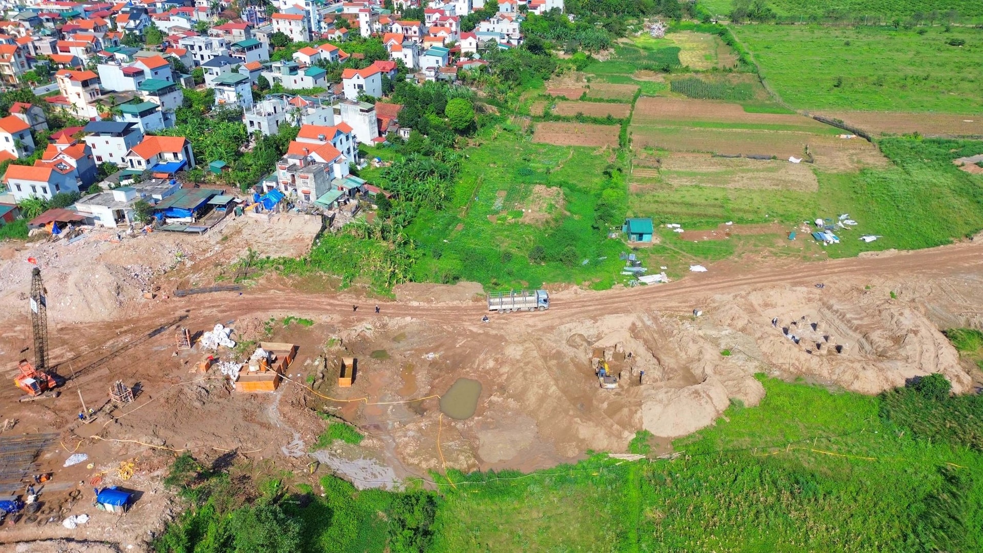 Hiên nay, nhà thầu đang đồng loạt thi công cọc khoan nhồi. Một số mố cầu đã hoàn thành khoan cọc.