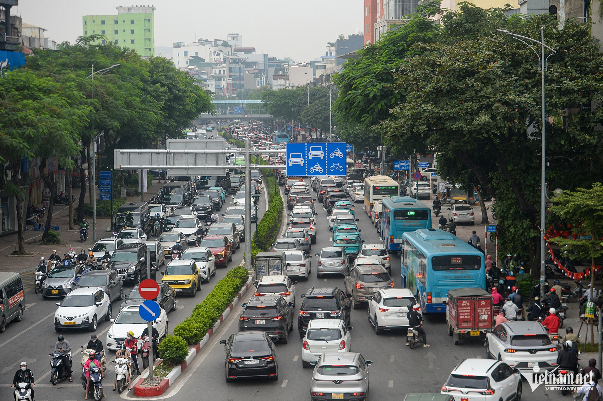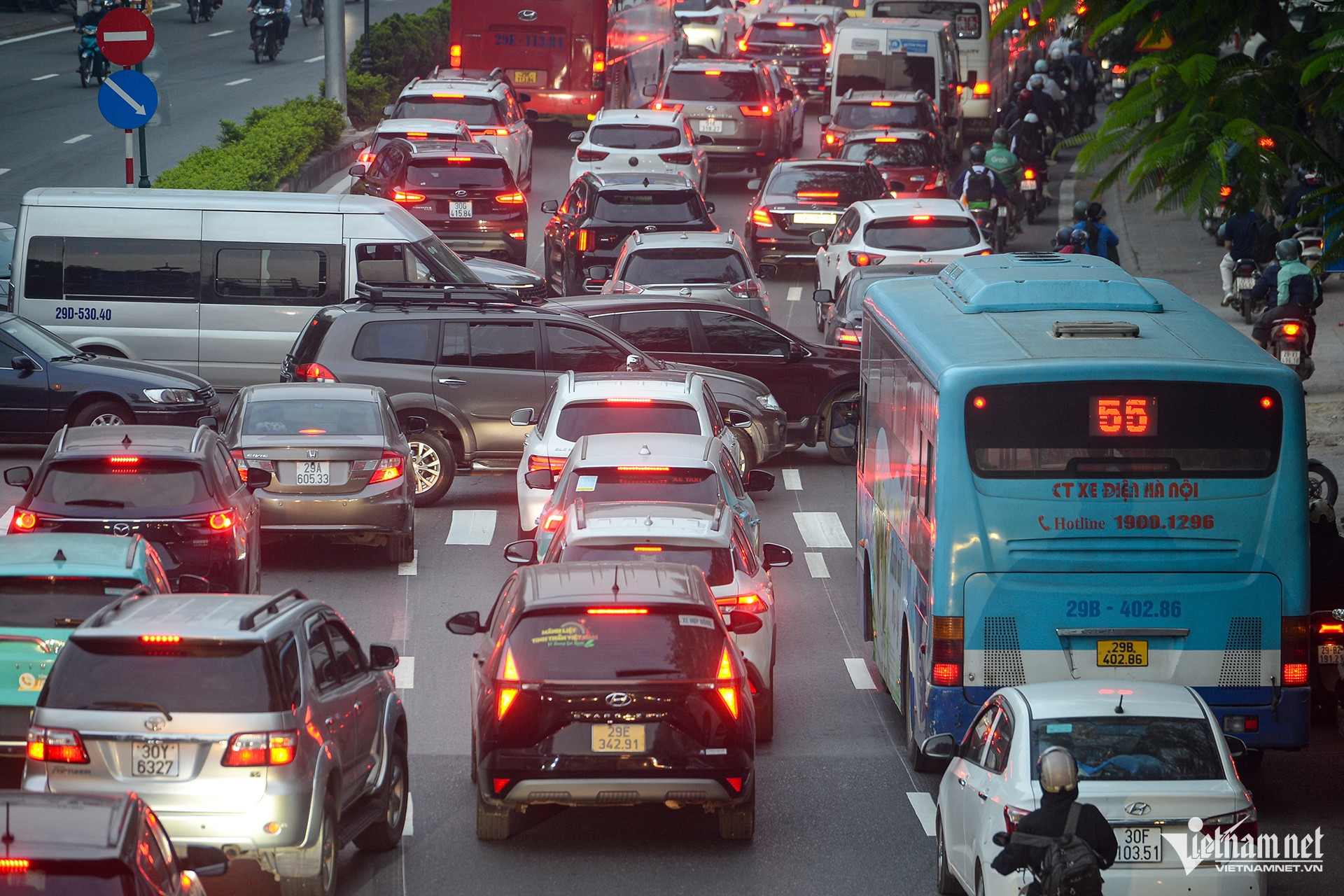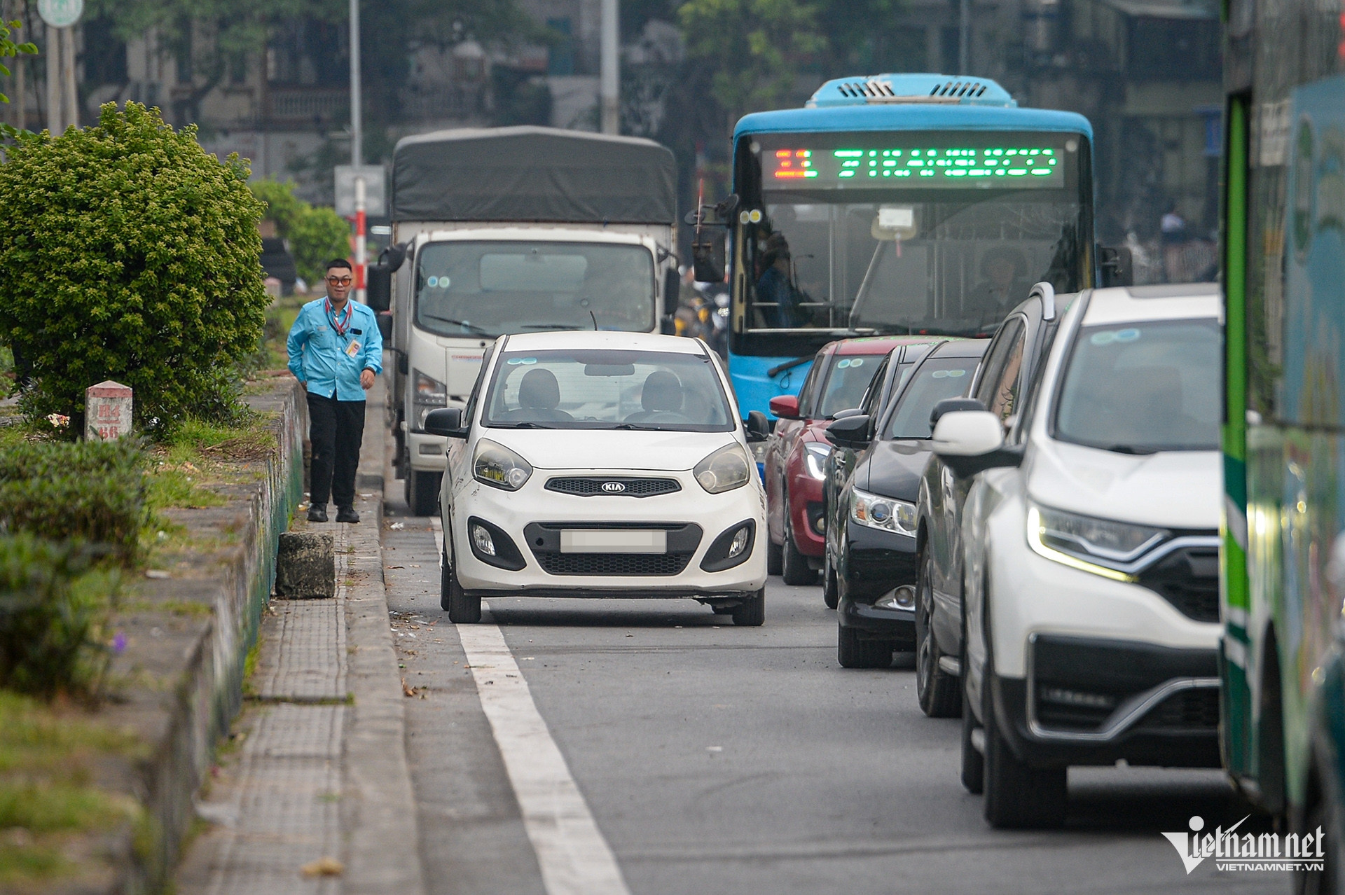 Nhiều tình huống khiến tình trạng ùn tắc càng thêm nghiêm trọng. Trong ảnh, một chiếc ô tô đỗ bên lề đường (không có tài xế) đã tạo thành "nút thắt cổ chai", khiến giao thông thêm rối loạn.
