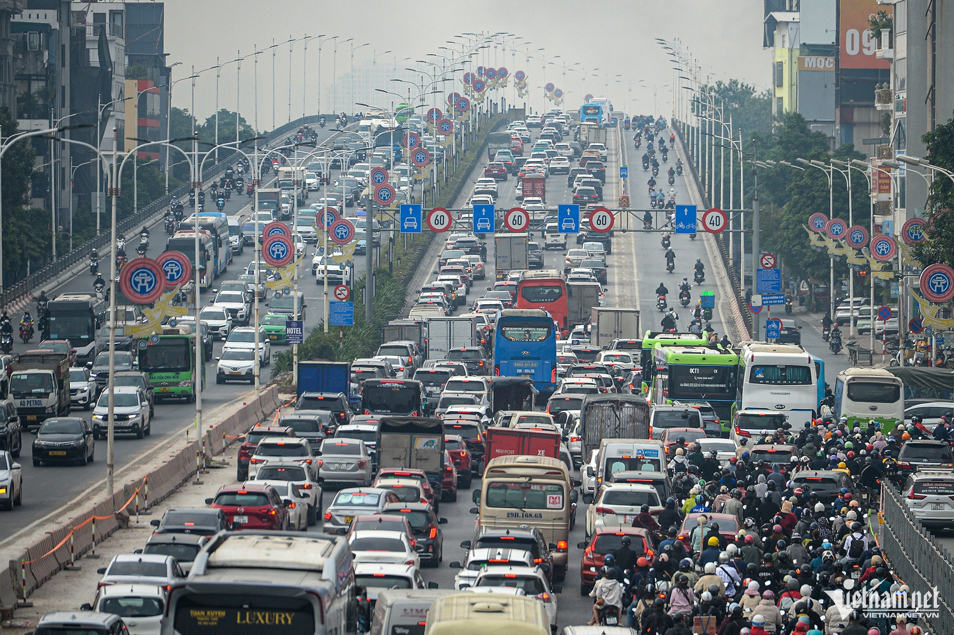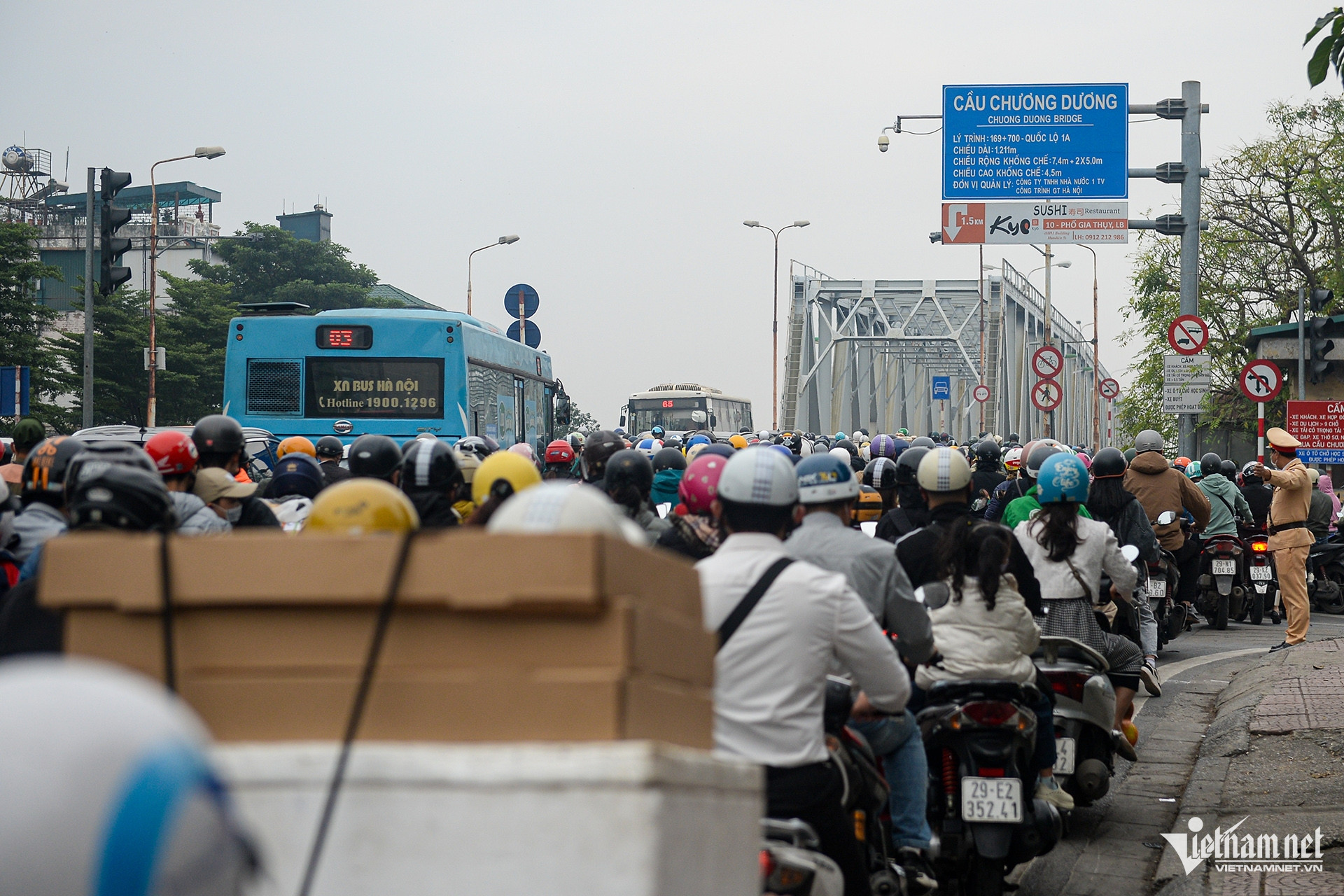 Tất cả các ngả đường dẫn lên cầu Chương Dương đều đông nghẹt phương tiện. Tình trạng ùn tắc ở các hướng như Nguyễn Văn Cừ, đường đê Long Biên - Xuân Quan còn kéo dài sang nhiều tuyến phố khác.