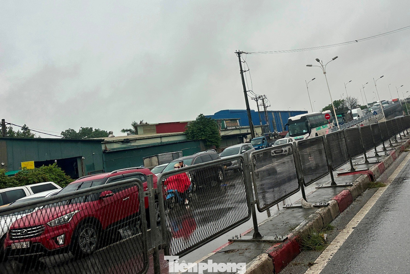 Với làn cầu Vĩnh Tuy dẫn xuống đê Nguyễn Khoái (nội thành), ùn tắc đã xảy ra kéo dài. Ảnh chụp lúc 16h30 ngày 3/11.