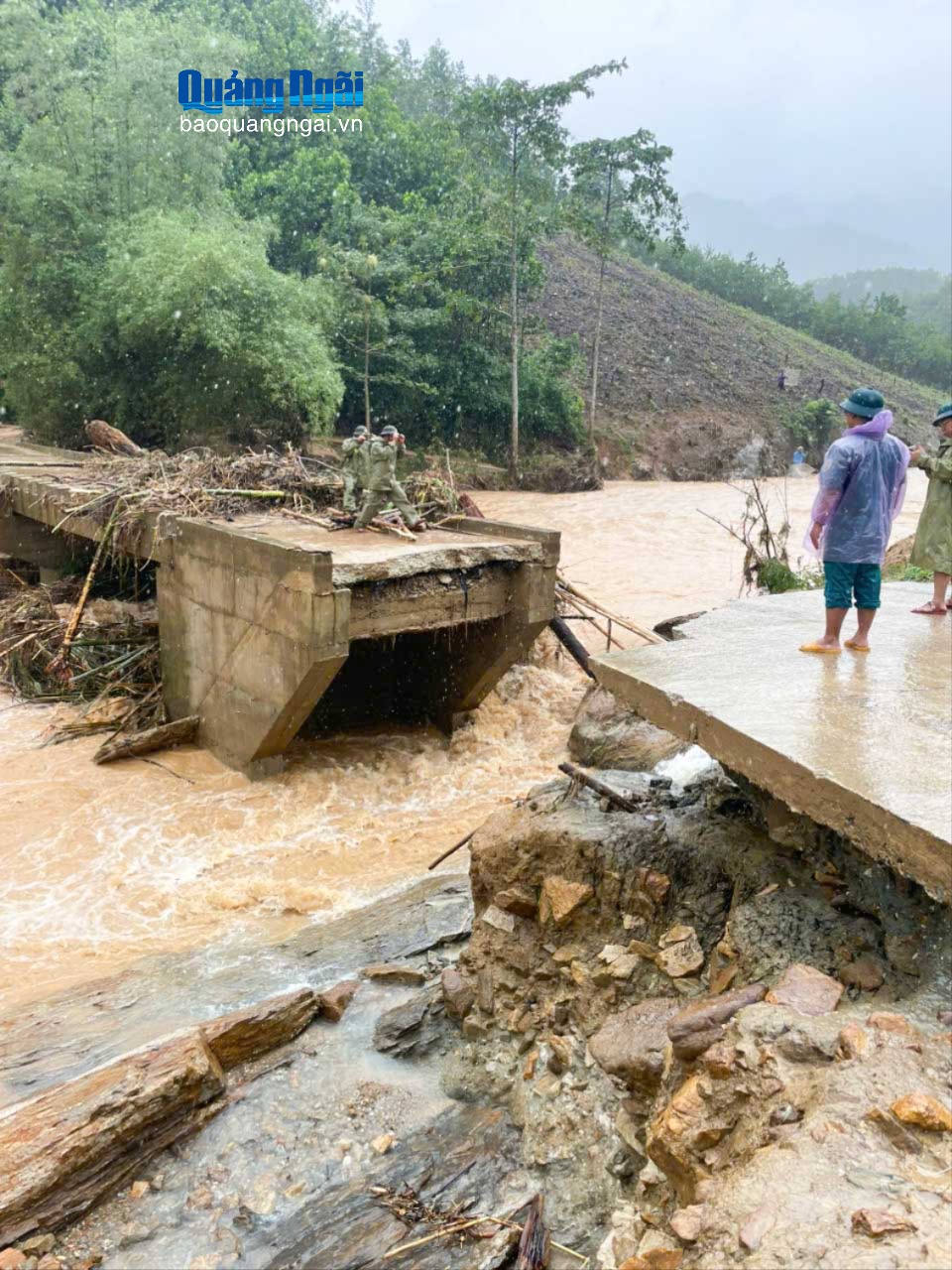 Cầu Sơn Bao, ở xã Sơn Hà bị gãy đôi.