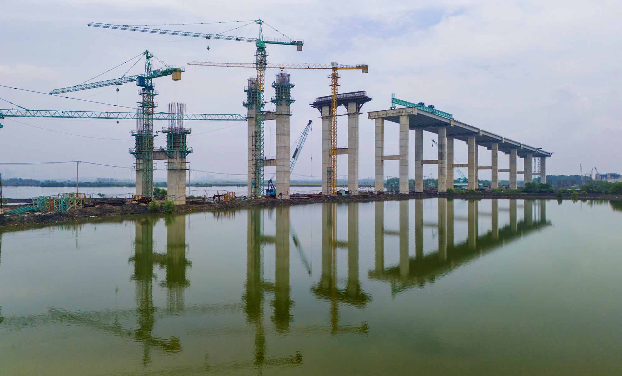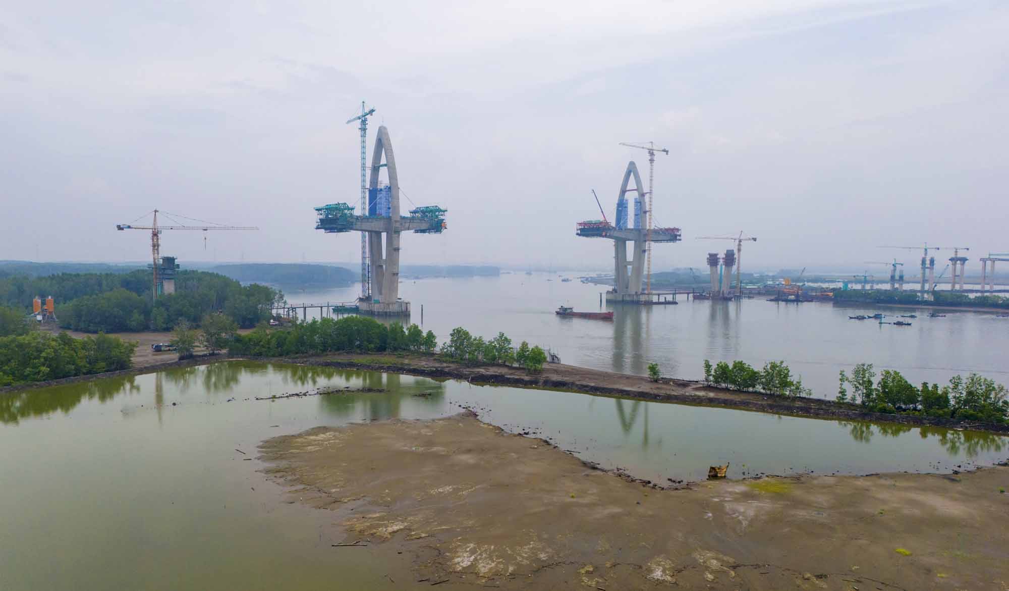 Toàn cảnh công trường thi công cầu Phước An vượt sông Thị Vải, nối TP.HCM và Đồng Nai.