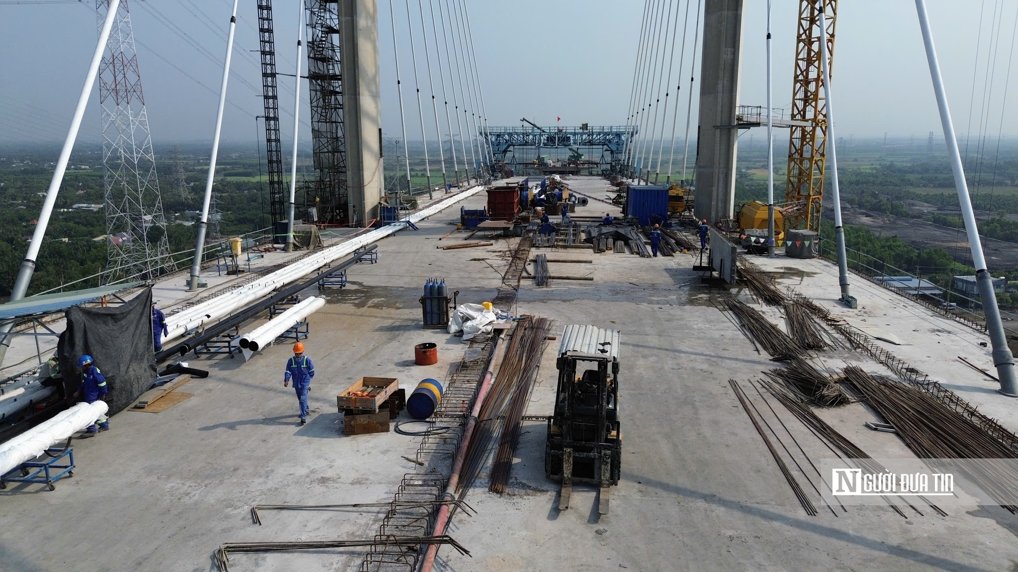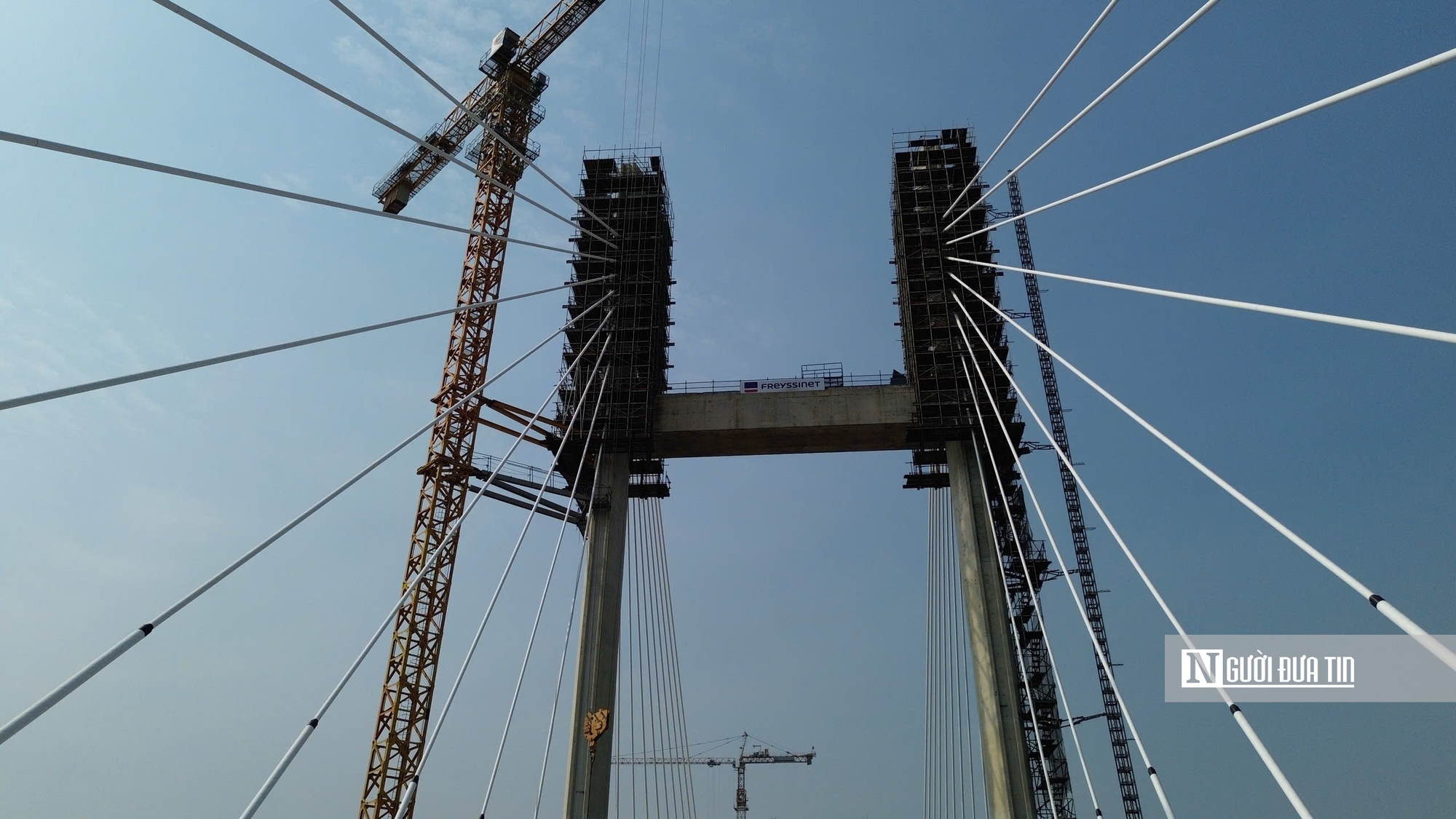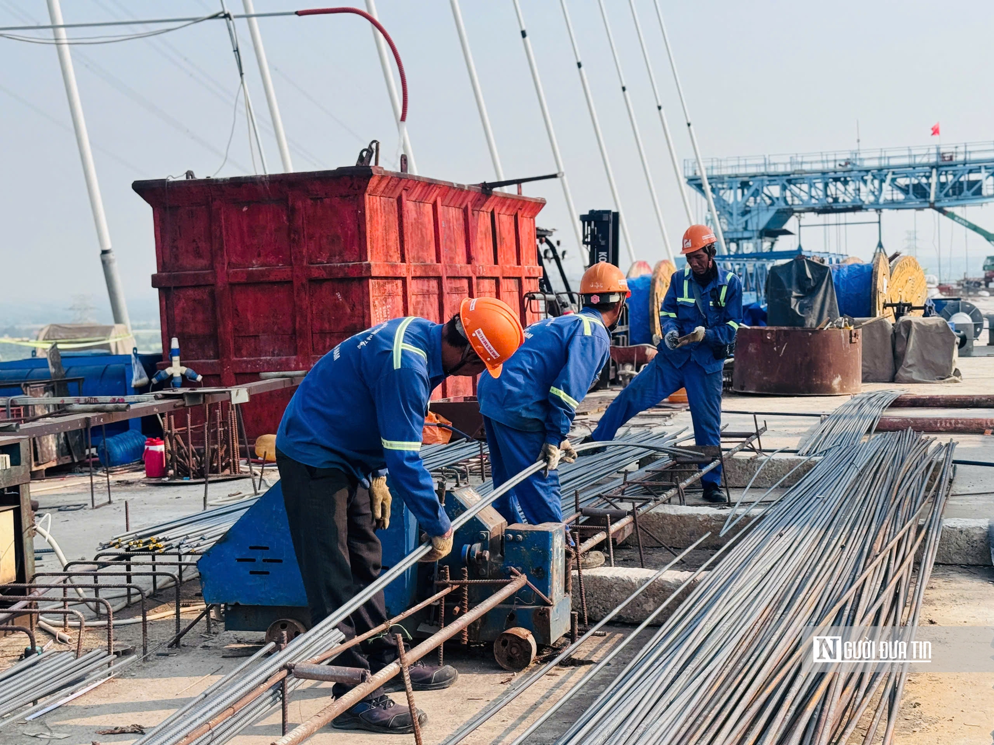 Theo chủ đầu tư, hiện nay công trình cầu này đã đạt trên 95%. Trên công trường, nhà thầu huy động hơn 300 kỹ sư, công nhân làm việc liên tục theo nhiều ca để đảm bảo tiến độ. Hiện, các mũi đang thi công ở hai trụ phần dầm chính dây văng. Dự kiến, hợp long vào tháng 5/2026 và thông xe vào quý III/2026.