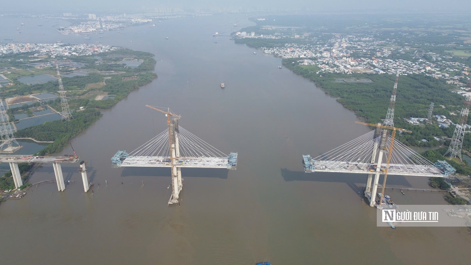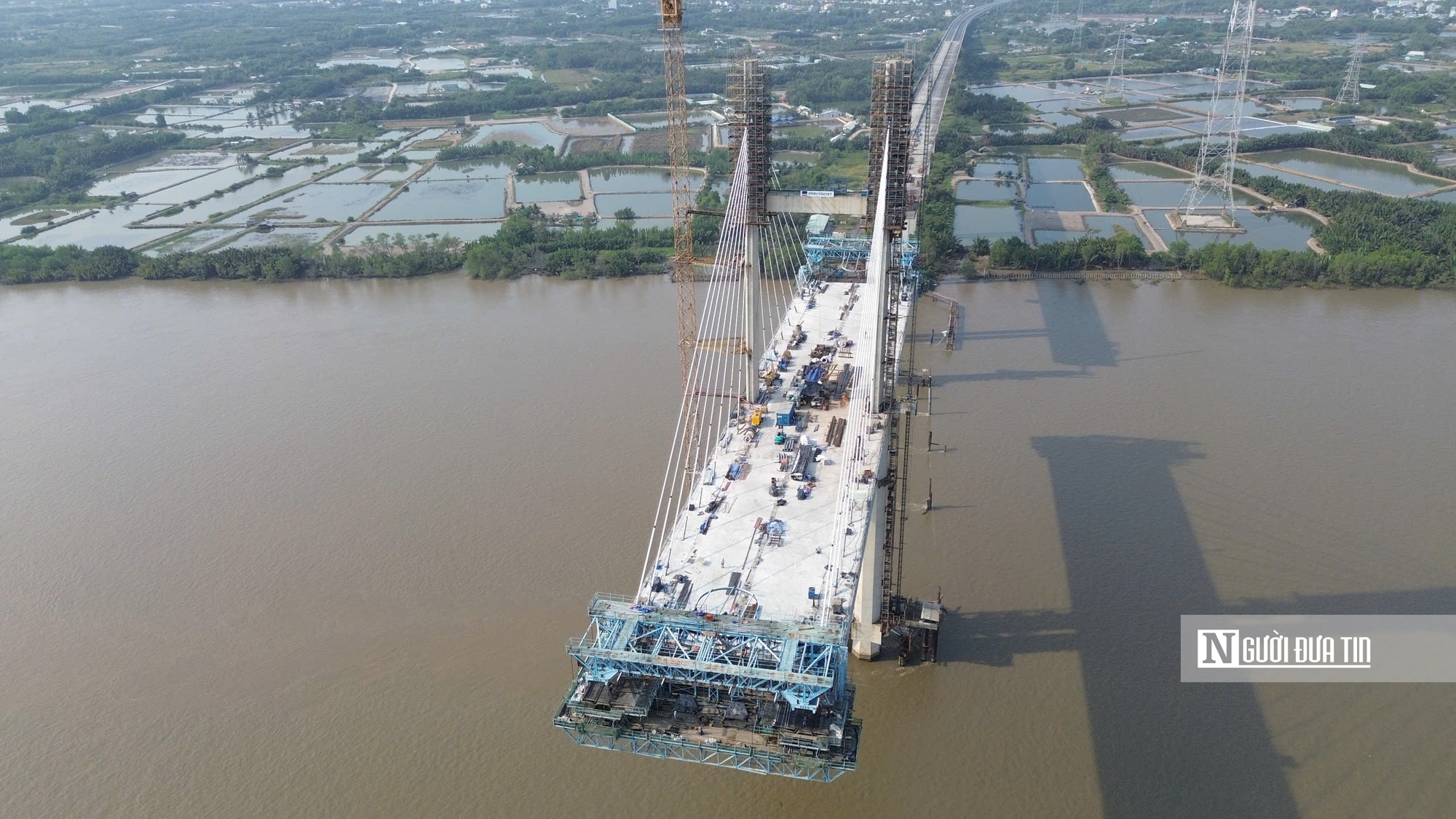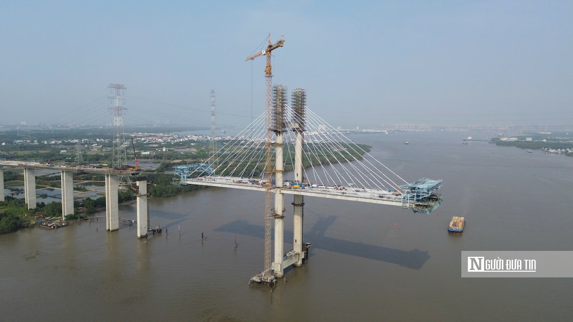 Theo chủ đầu tư, hiện nay công trình cầu này đã đạt trên 95%. Trên công trường, nhà thầu huy động hơn 300 kỹ sư, công nhân làm việc liên tục theo nhiều ca để đảm bảo tiến độ. Hiện, các mũi đang thi công ở hai trụ phần dầm chính dây văng. Dự kiến, hợp long vào tháng 5/2026 và thông xe vào quý III/2026.