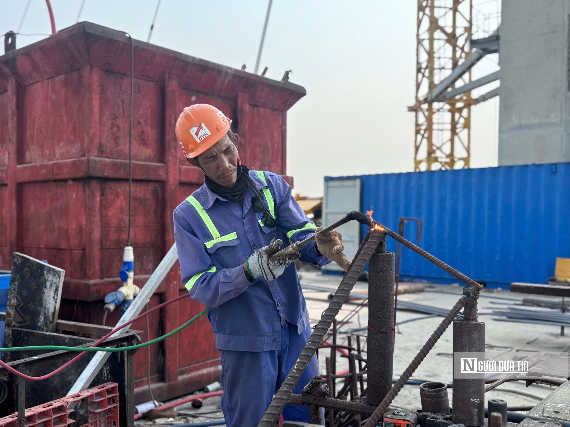 Ghi nhận tại công trường những ngày giáp Tết, các mũi thi công được tổ chức liên tục trên cả hai trụ chính của cầu dây văng.