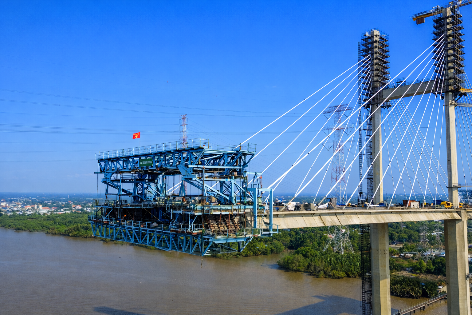 "Đến nay, toàn bộ công trình đã đạt trên 95%. Trên công trường, nhà thầu huy động hơn 300 kỹ sư, công nhân làm việc liên tục theo nhiều ca, nhiều kíp để đảm bảo tiến độ. Hiện, các mũi đang thi công ở hai trụ phần dầm chính dây văng. Dự kiến, hợp long vào tháng 5/2026 và thông xe vào quý III/2026", ông Hậu nói.