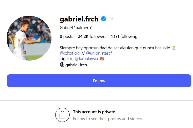 Rodrigo Holgado chuyển trang cá nhân về trạng thái riêng tư.