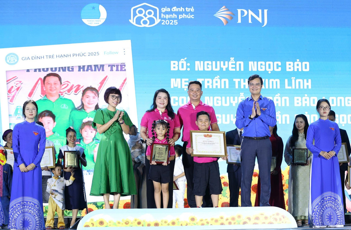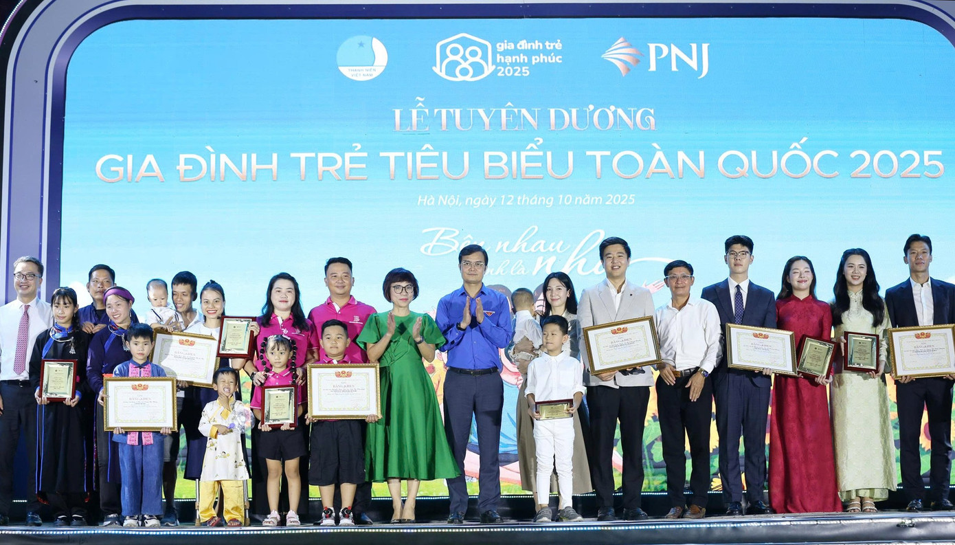 Tối 12/10, tại Hà Nội, Trung ương Hội Liên hiệp Thanh niên Việt Nam phối hợp với Công ty CP Vàng bạc đá quý Phú Nhuận (PNJ) tổ chức Lễ tuyên dương “Gia đình trẻ hạnh phúc” năm 2025 với chủ đề “Bên nhau, mình là Nhà – Viết hành trình yêu thương”.