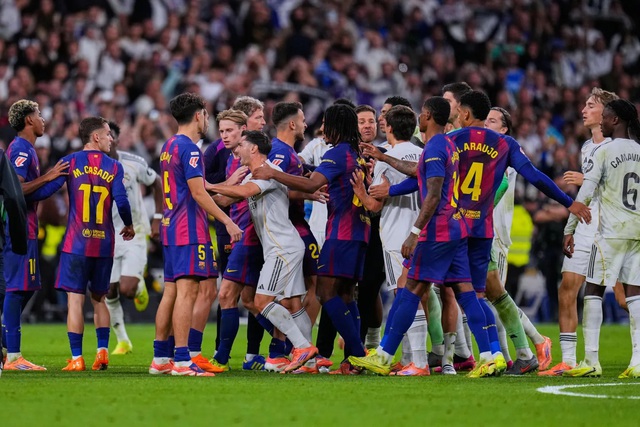 Trước đó, Kylian Mbappe đã ghi bàn mở tỉ số cho Real ở phút 22, nhưng Fermin Lopez nhanh chóng gỡ hòa cho Barcelona chỉ năm phút sau. Trận đấu khép lại với chiến thắng sát nút cho Real Madrid, nhưng hình ảnh ẩu đả cuối trận đã phủ bóng lên một El Clásico đầy kịch tính.