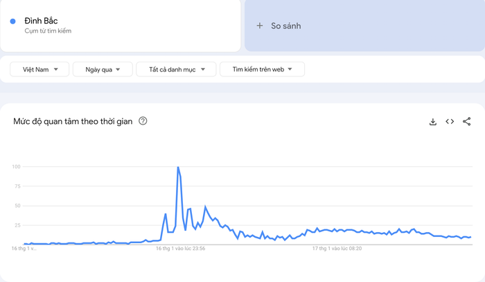 Tiền đạo Đình Bắc nhận được nhiều sự chú ý sau chiến thắng của U23 Việt Nam. (Ảnh: Google Trends)