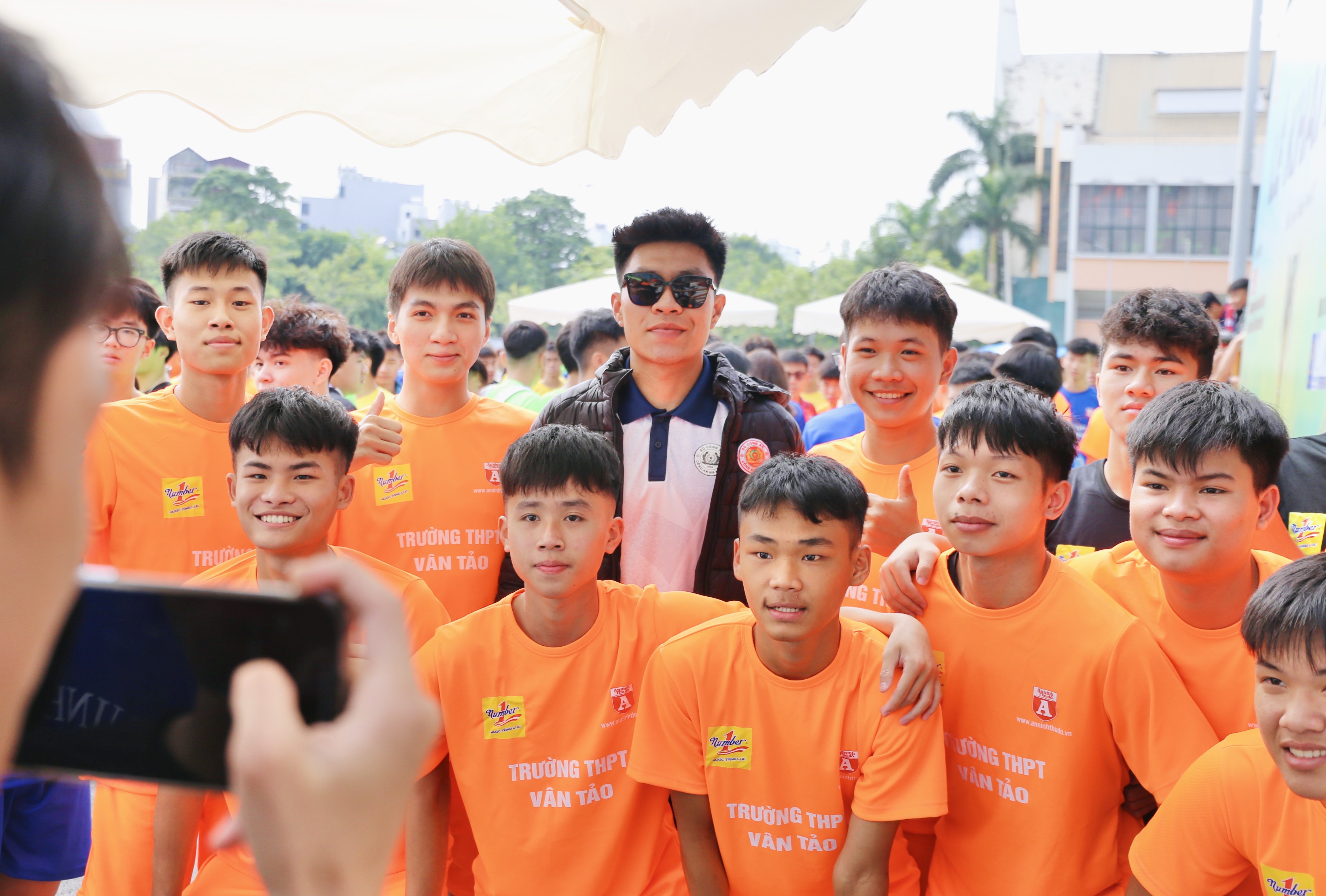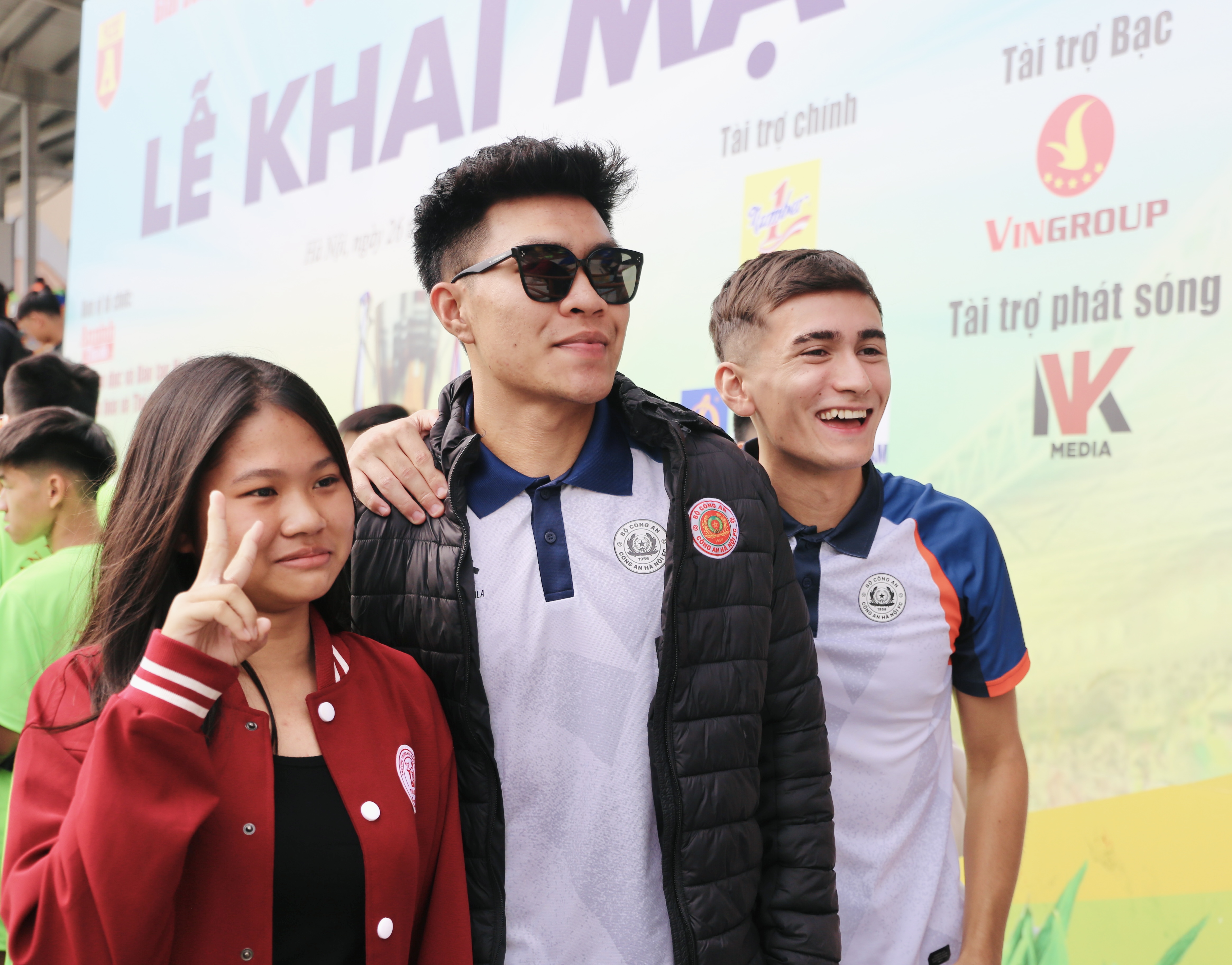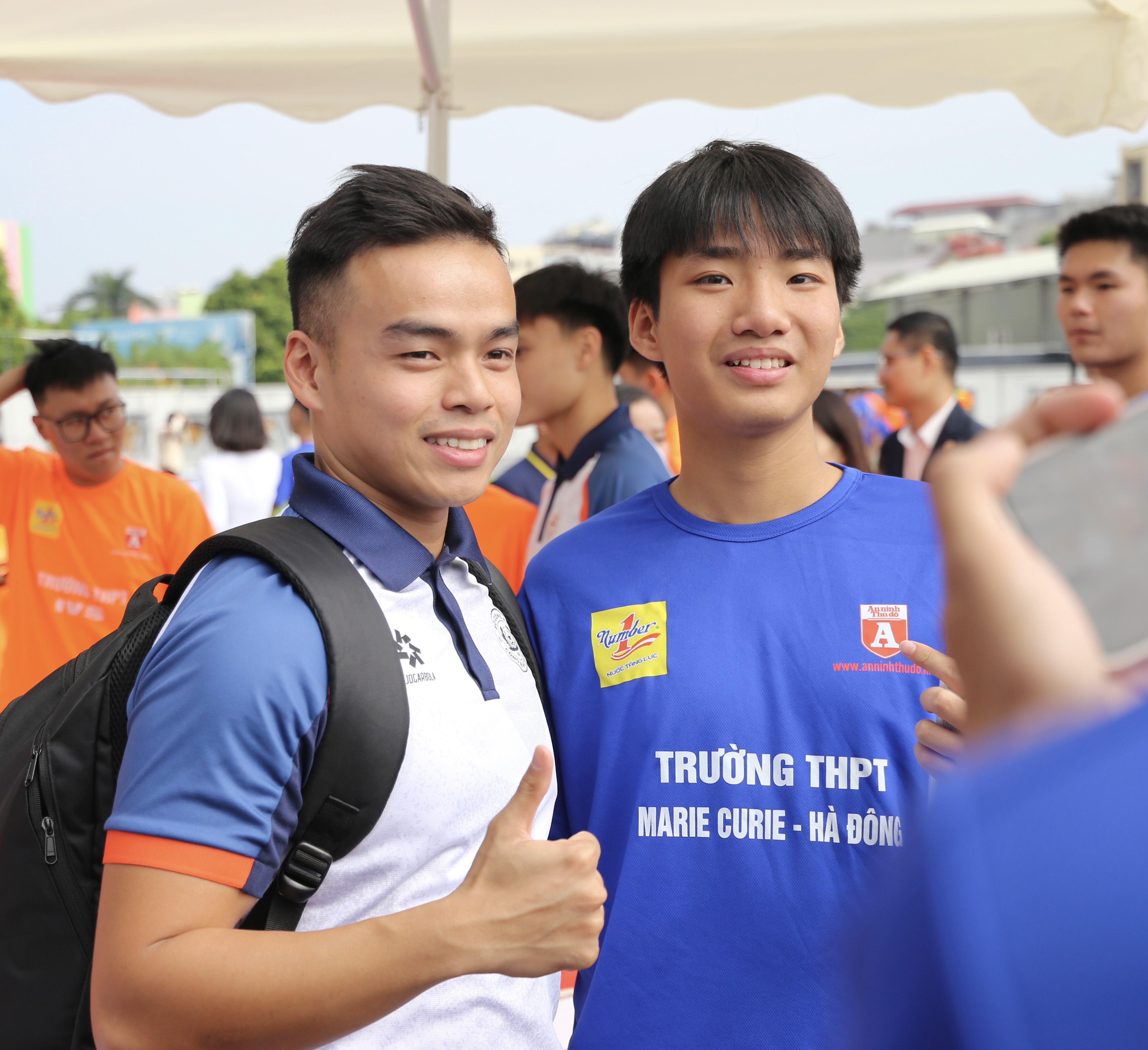 Sự xuất hiện của Brandon Ly cùng các cầu thủ Công an Hà Nội khuấy động bầu không khí ngày hội khai màn Giải bóng đá học sinh THPT Hà Nội - An ninh Thủ đô 2025