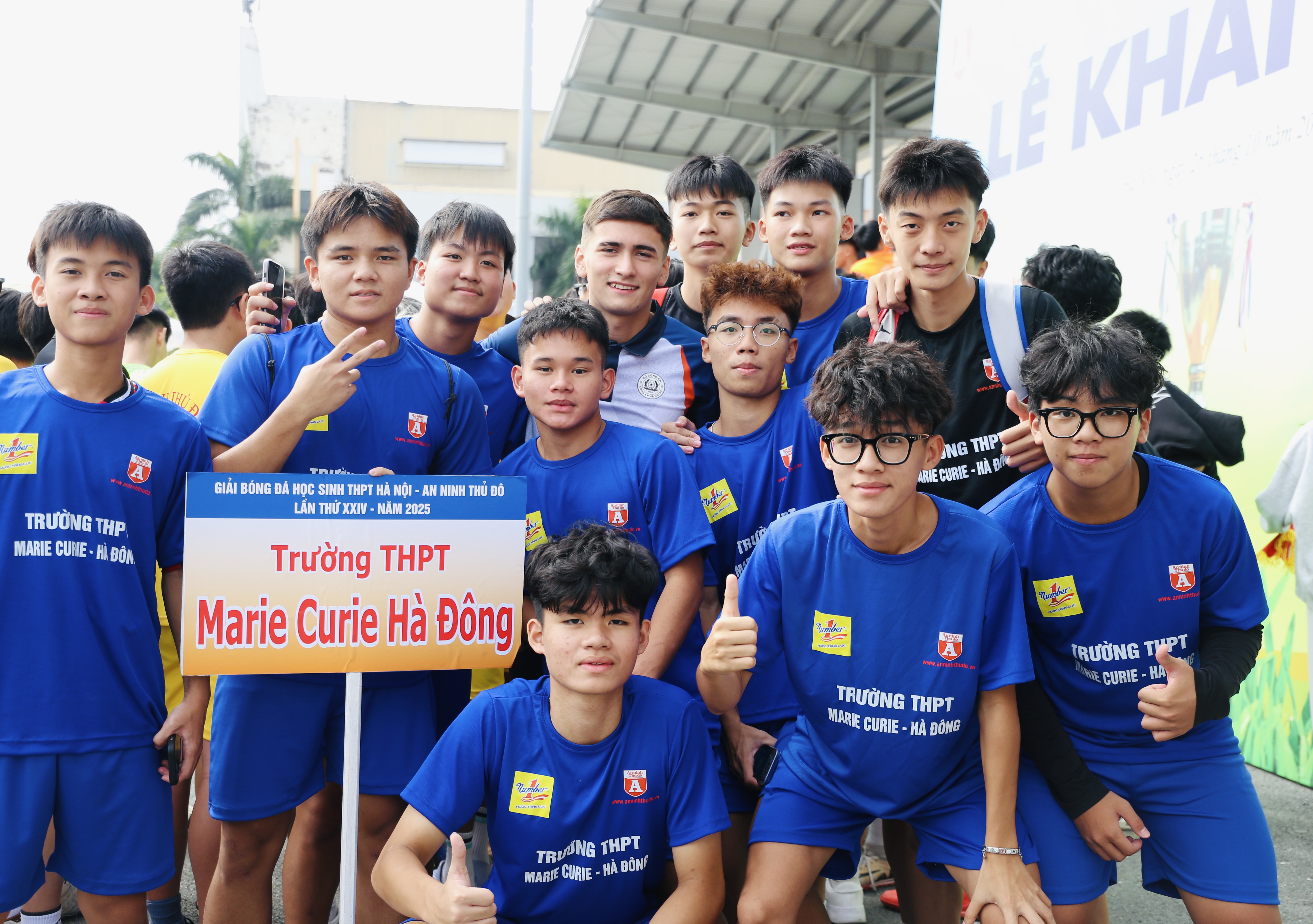 Tấm hình kỷ niệm của THPT Marie Curie với sự xuất hiện của tài năng trẻ Việt kiều Anh đang khoác áo CLB Công an Hà Nội đang thi đấu Cúp C2 châu Á, C1 Đông Nam Á, V-League và Cúp quốc gia mùa giải 2025