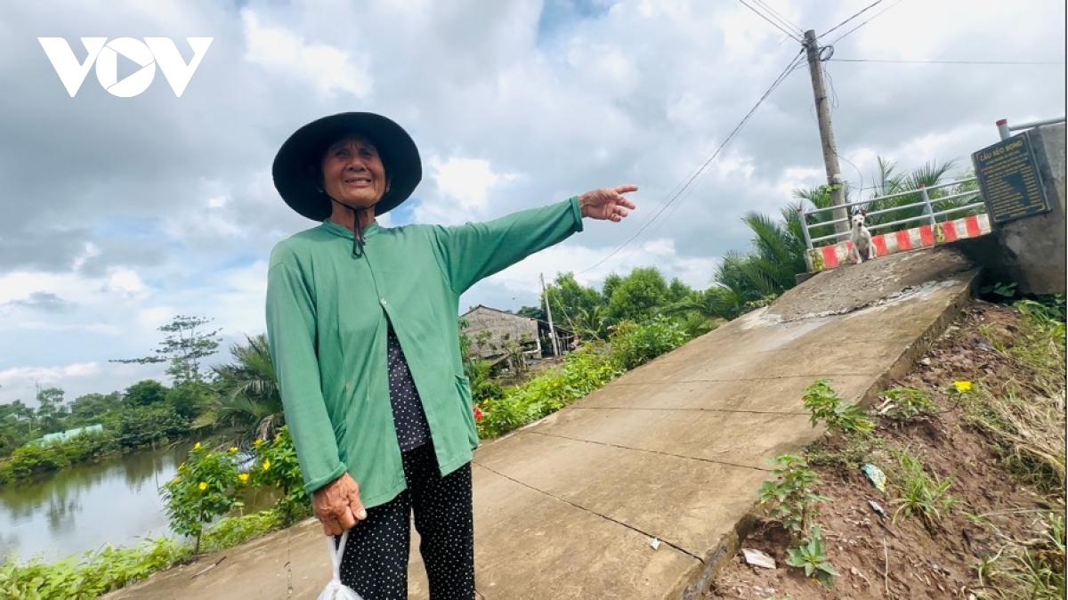 Bà Dương Thị Đính, một người dân khác trong xã, kể lại: “Ngày thi công, sàn cầu từng sập một lần rồi. Giờ đi ghe dưới cầu mà rợn người, sợ cầu gãy bất kỳ lúc nào”.